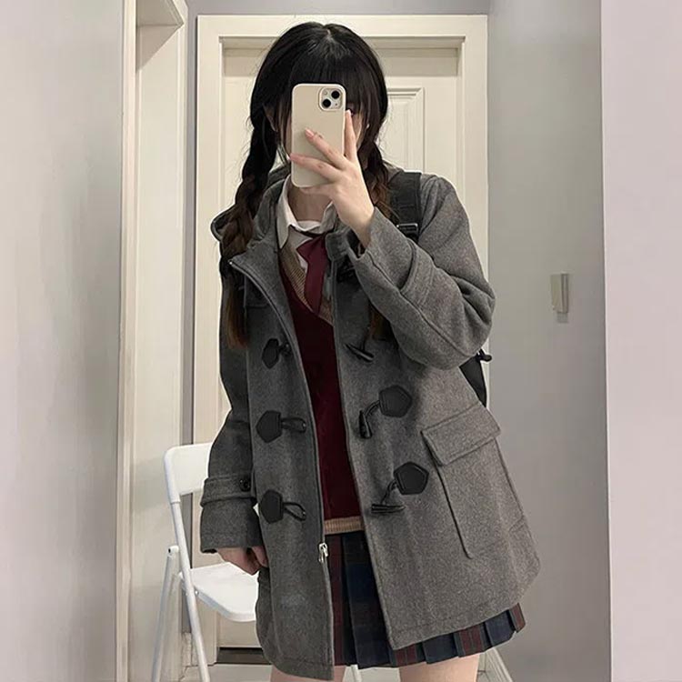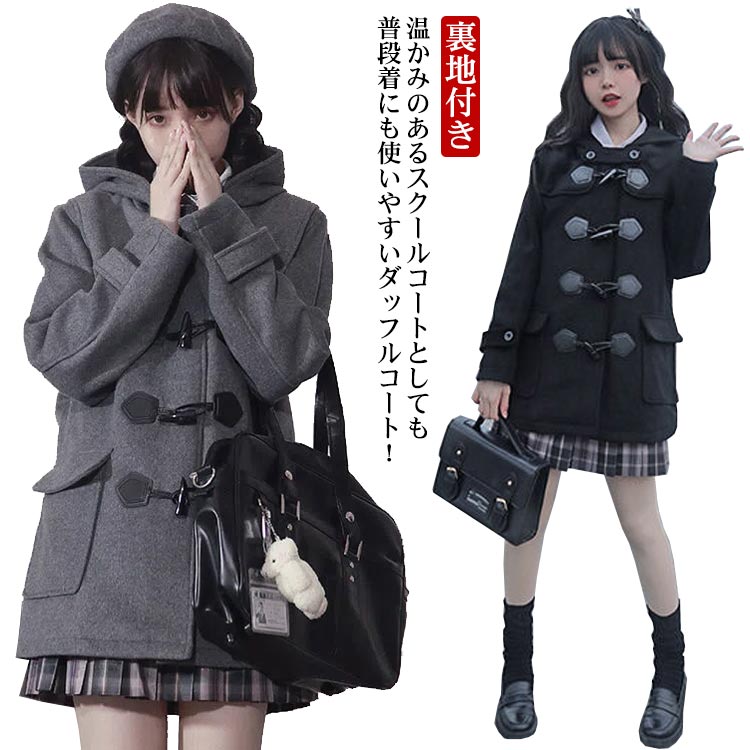 ダッフルコート ウールライク 裏地付き コート ジャケット 豊富 グレー ブラック S M L XL