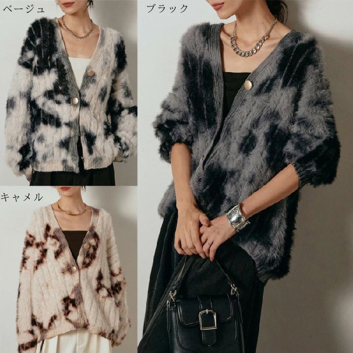 ゆったり シャギー カー 羽織り ニッ トップス カーディガン ボレロ 新作 ブラック ベージュ キャメル