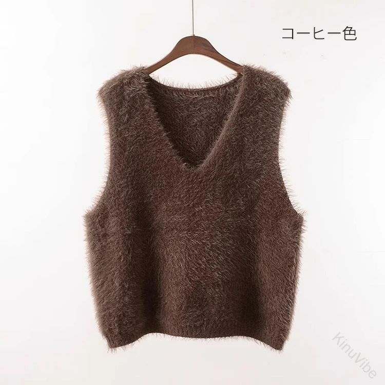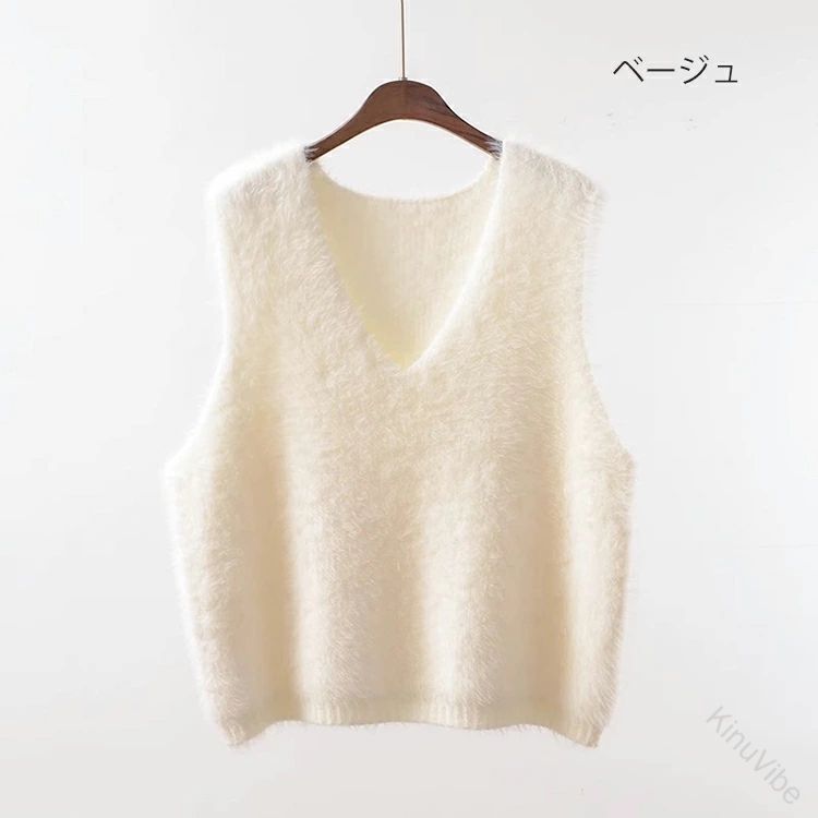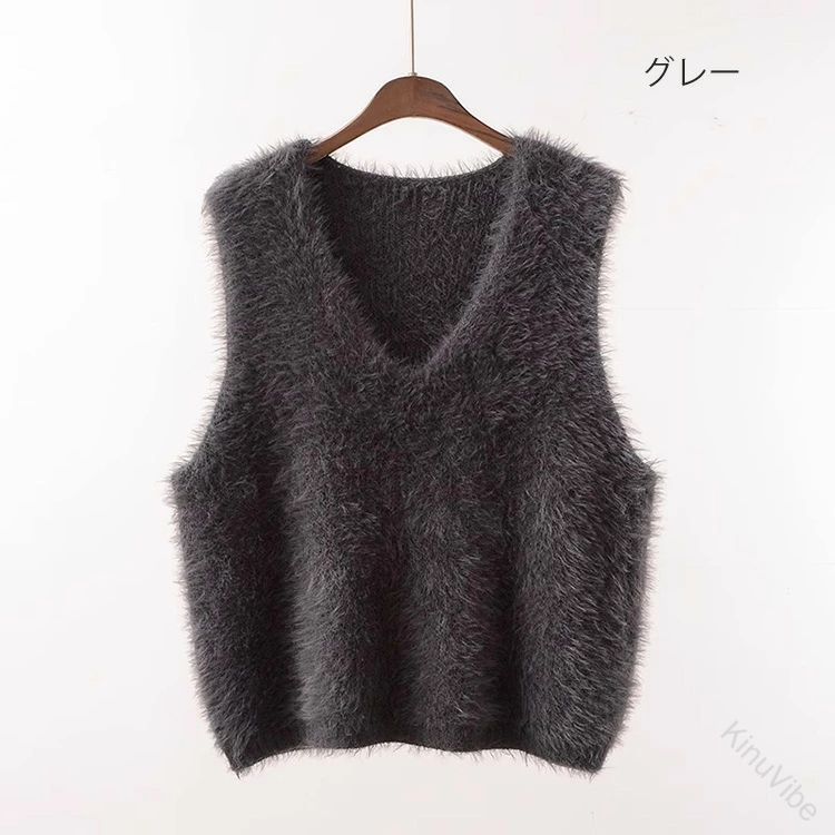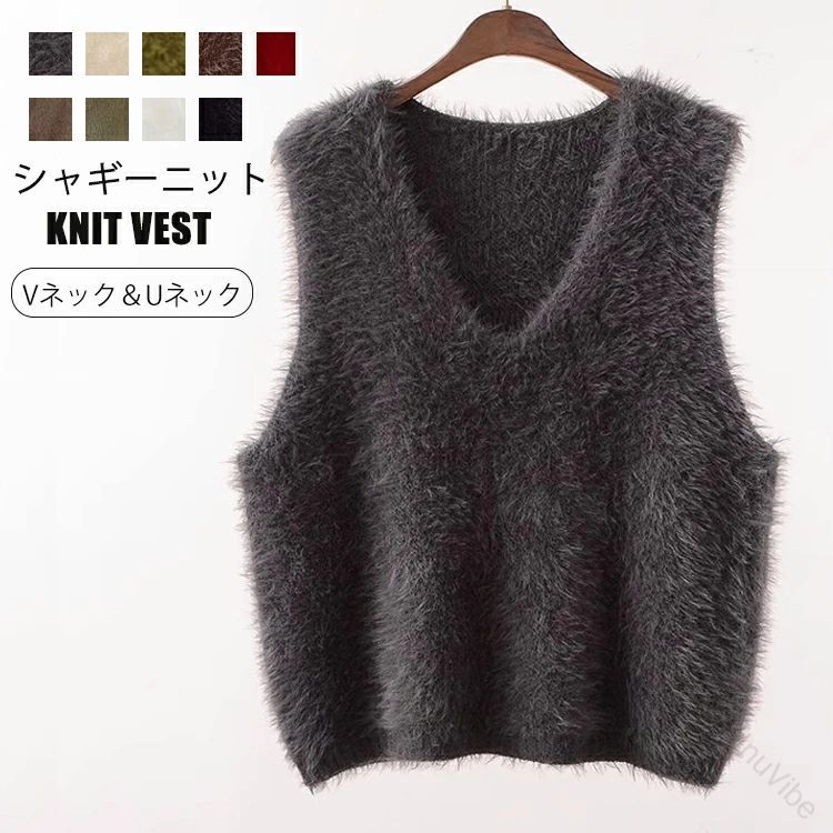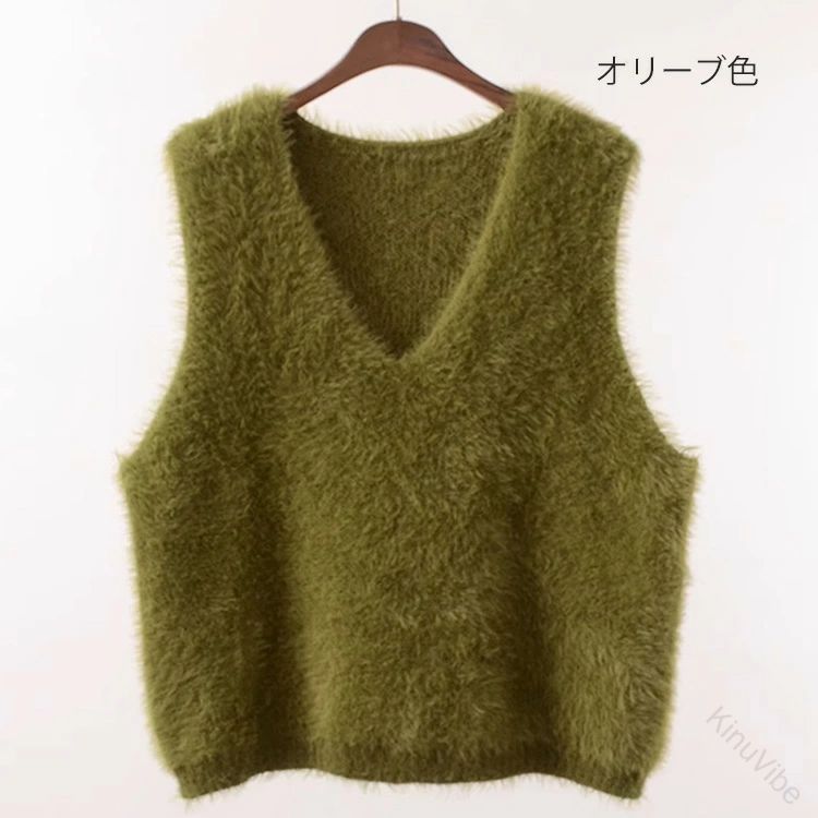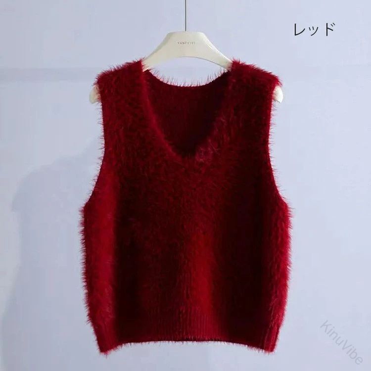 Vネック ベスト シャギーベスト レイ トップス ベスト 早い者勝ち グレー コーヒー色 カーキグリーン らくだ色 ブラック ホワイト ベージュ オリーブ色 レッド Vネック Uネック