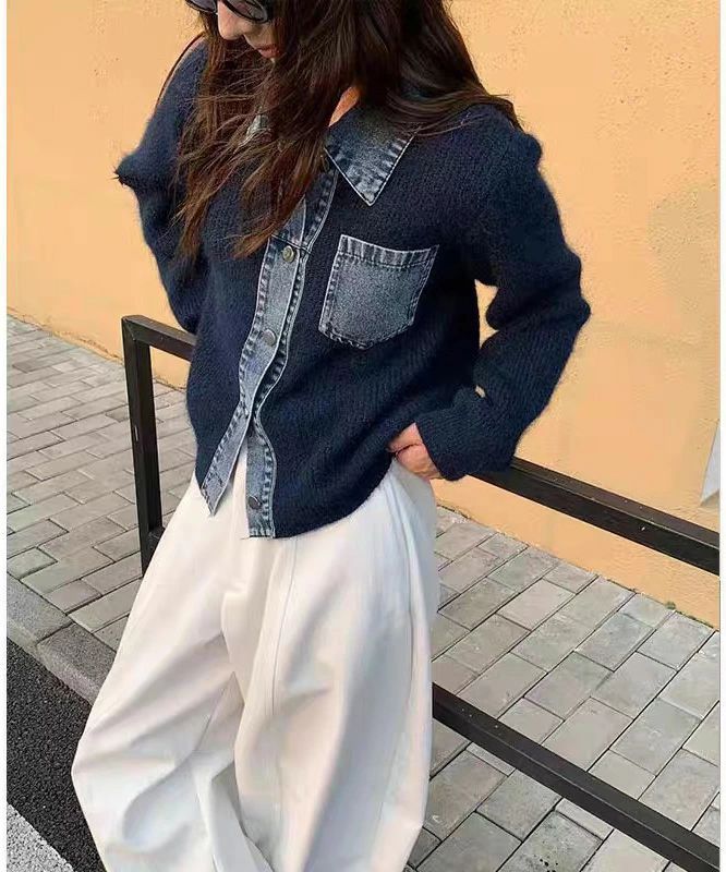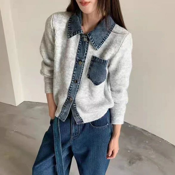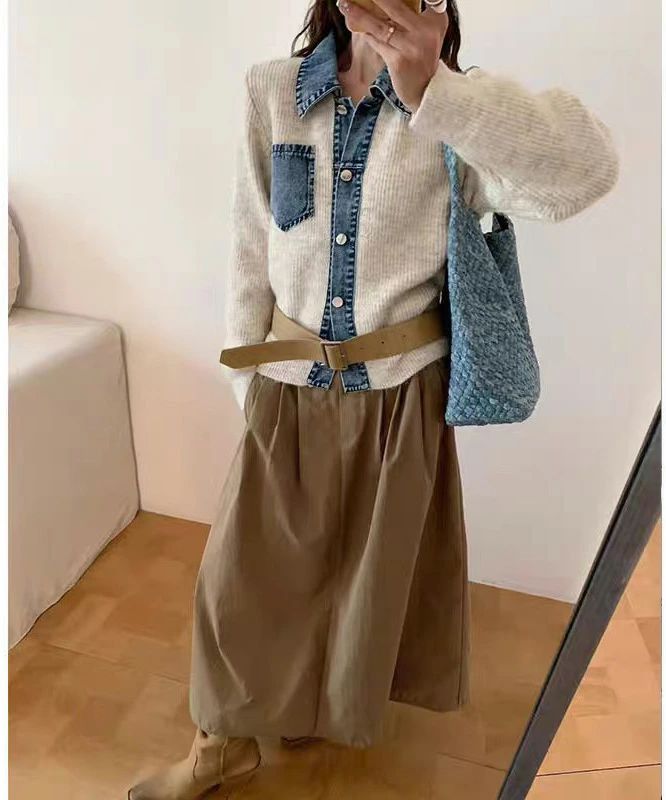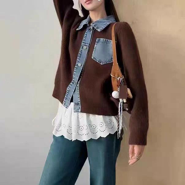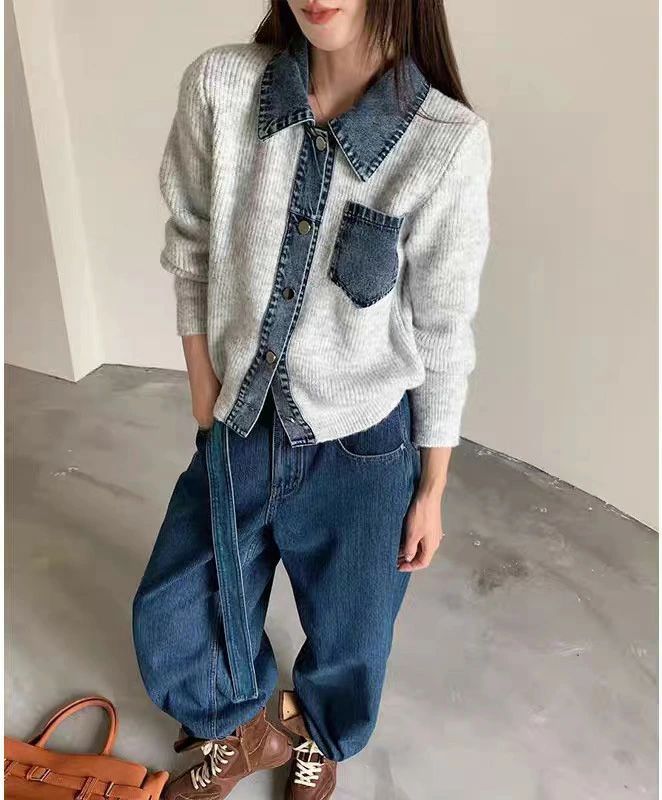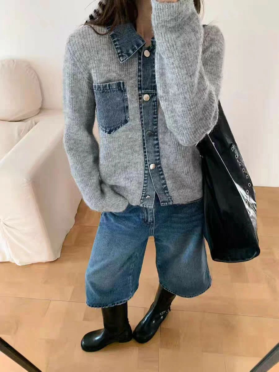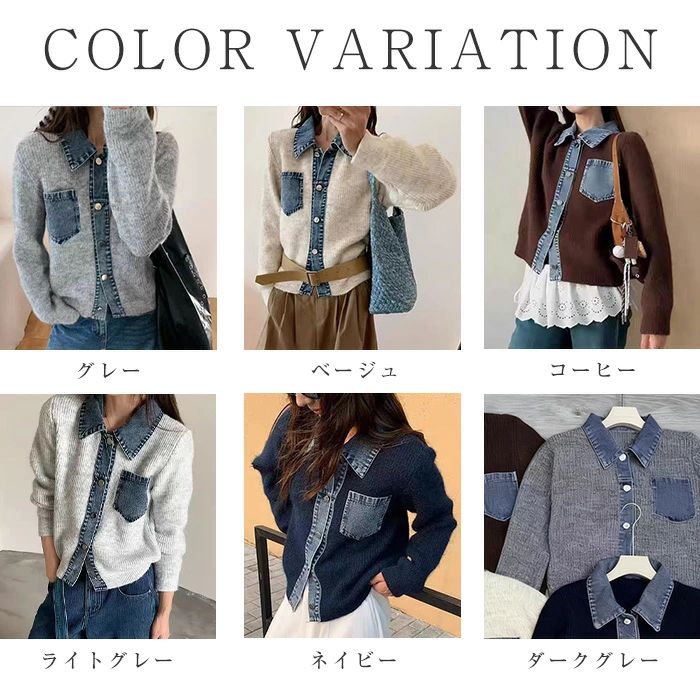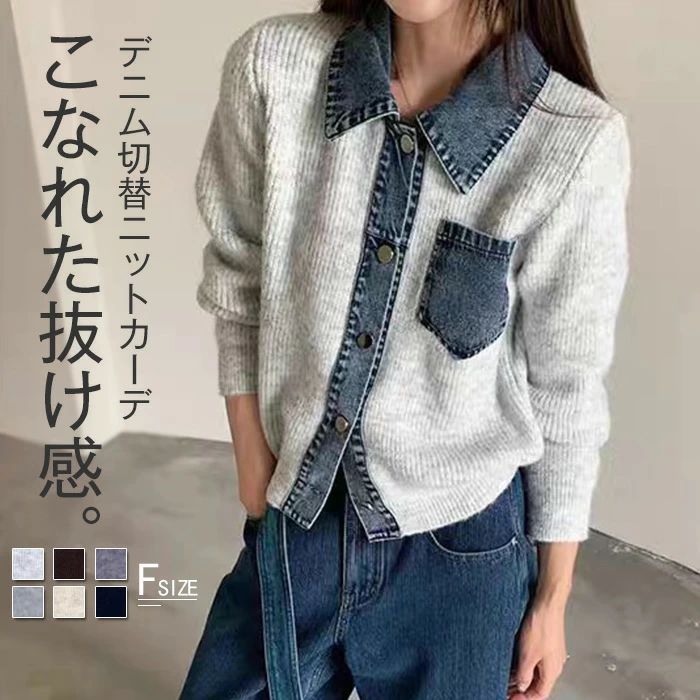 デニム切替 カーディガン きれいめ フ レディースファッション 続々入荷中 グレー ベージュ コーヒー ライトグレー ネイビー ダークグレー