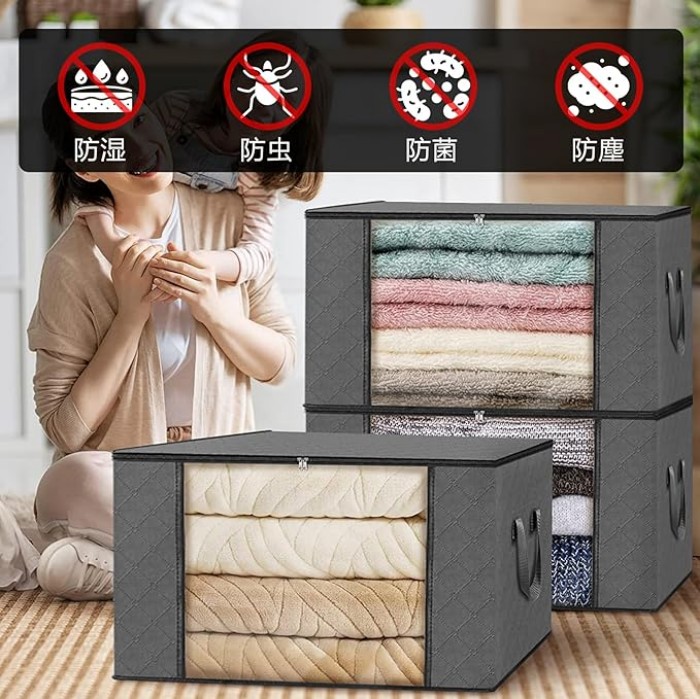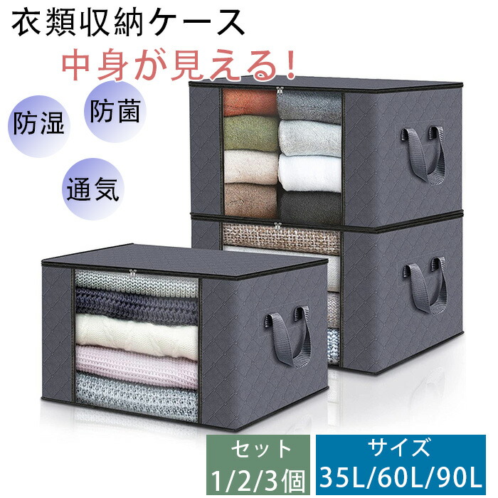 衣類収納ケース 収納ボックス 1 2 ダークグレー (1枚) ダークグレー (2枚) ダークグレー (3枚) 35L 60L 90L