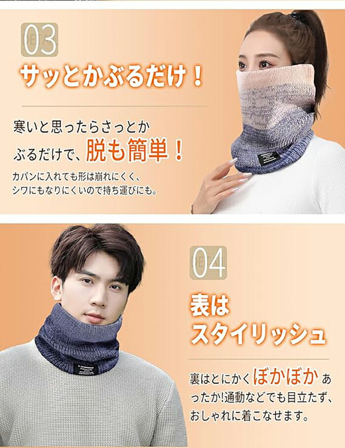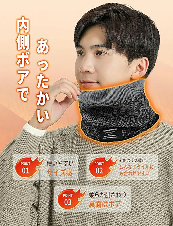 暖かい 裏起毛 リブ編み ネックウォー グレー ブルー ネイビー イエロー カーキ ワインレッド ピンク ベージュ