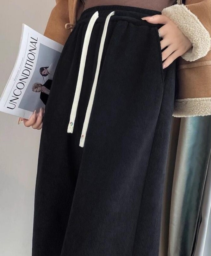ハイウエスト 裏起毛パンツ ワイドパン ボトムス パンツ 超目玉商品 ブラック カーキ ダークグレー ブラウン L XL 2XL 3XL 4XL 5XL 6XL