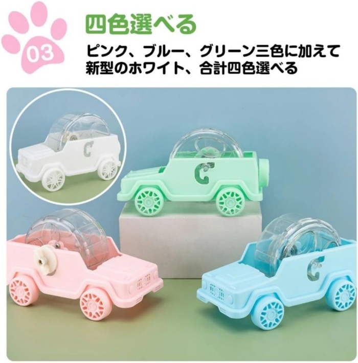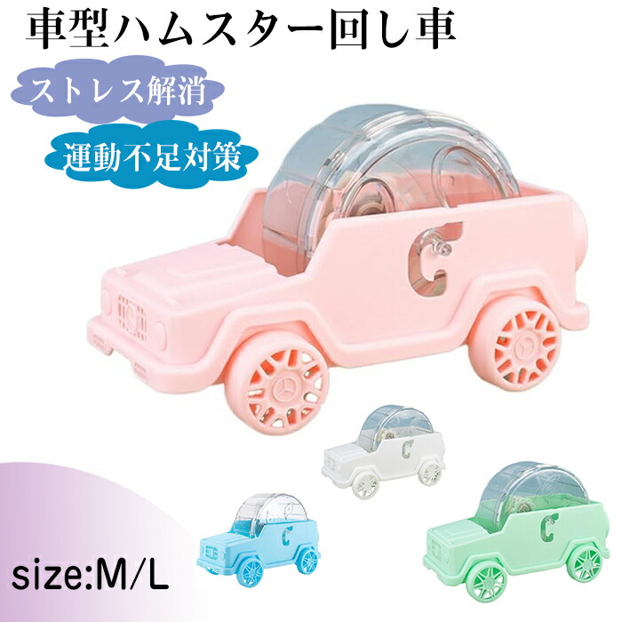 車型ハムスター回し車 回し車 静か 車 ピンク グリーン ブルー ホワイト M L