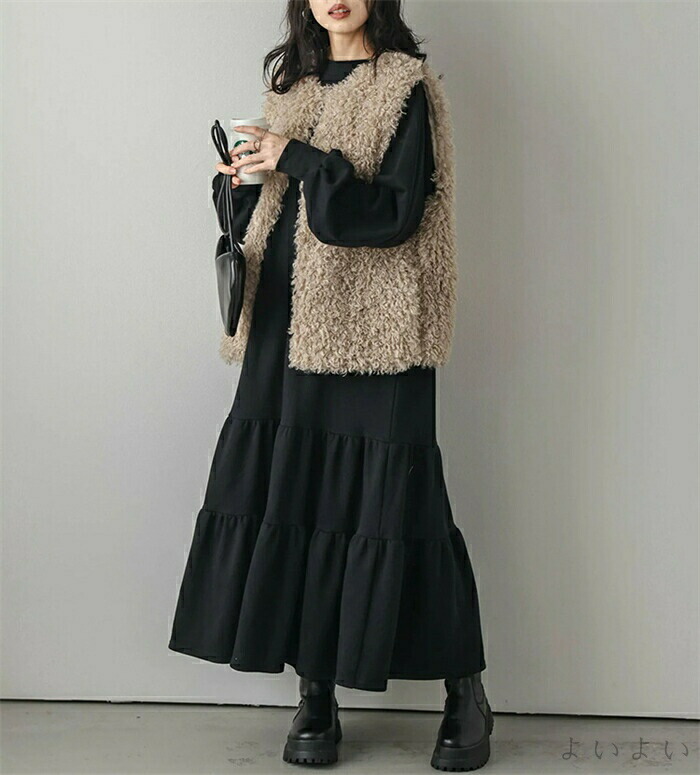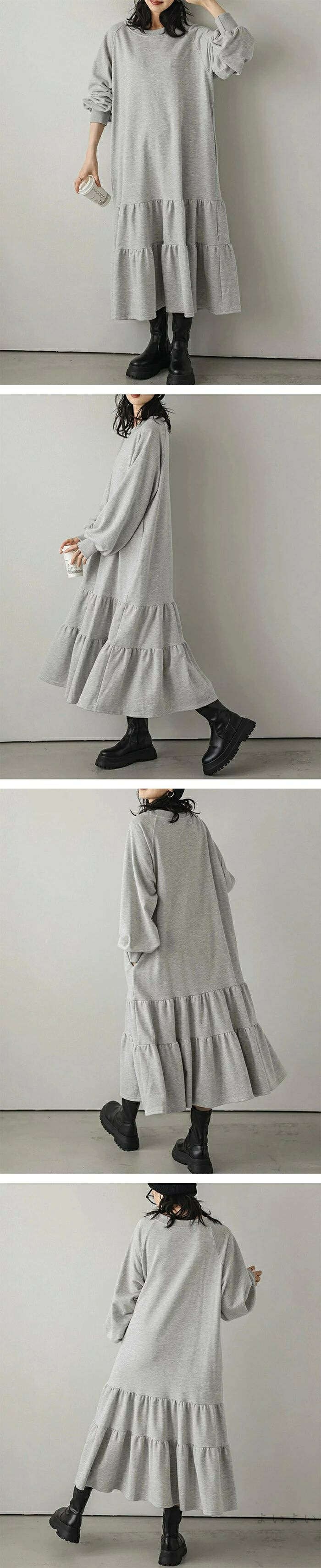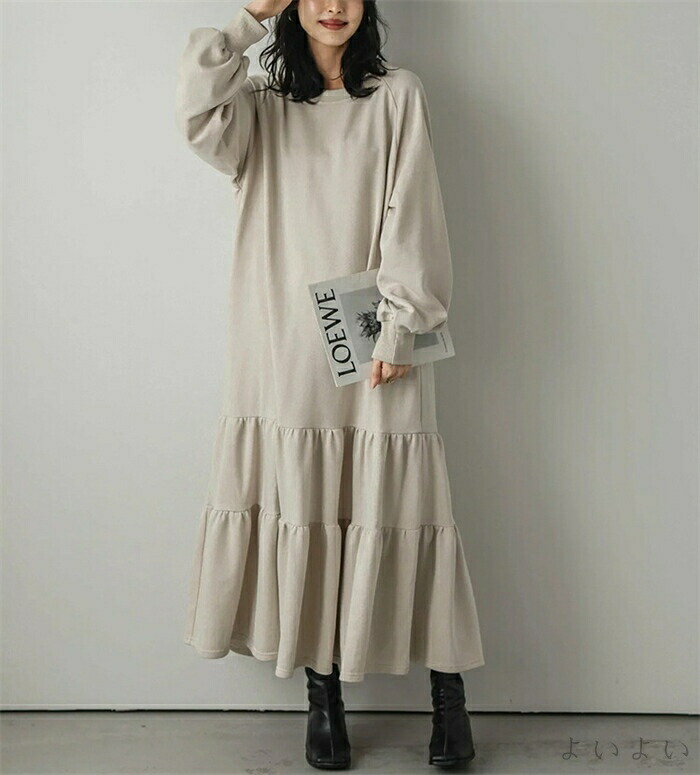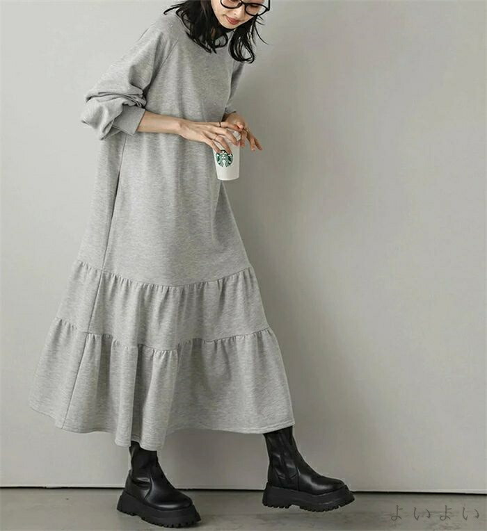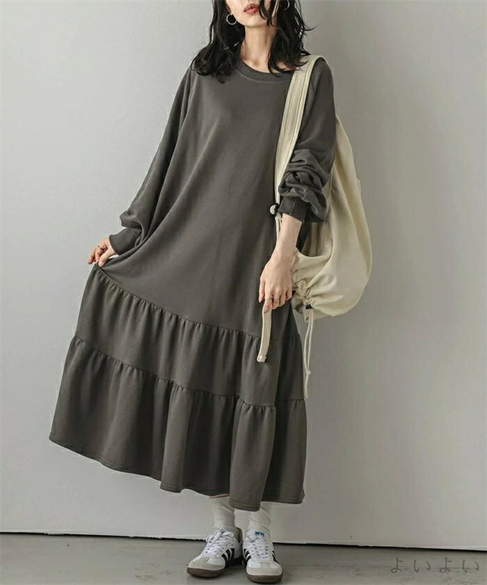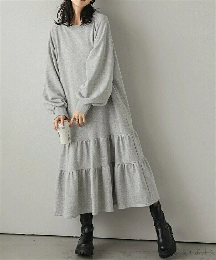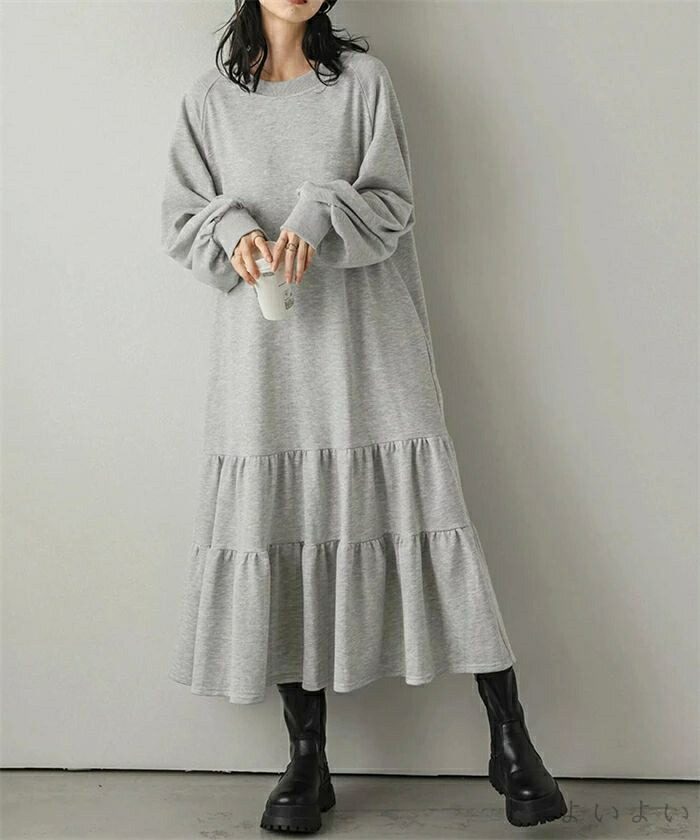 ワンピース ティアード 秋 ティアード ワンピース 続々登場 ブラック ベージュ ライトグレー ダークグレー M L