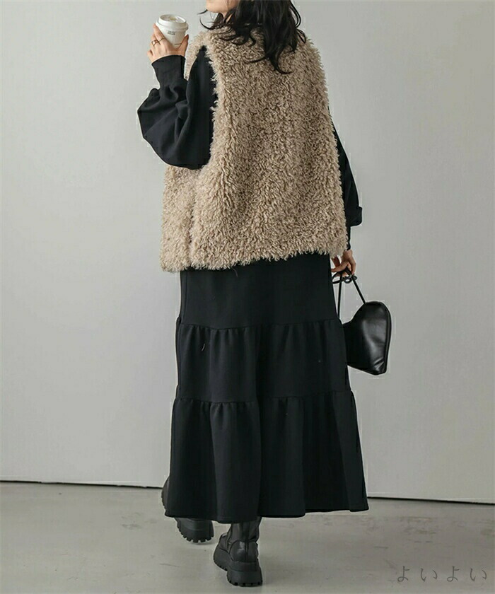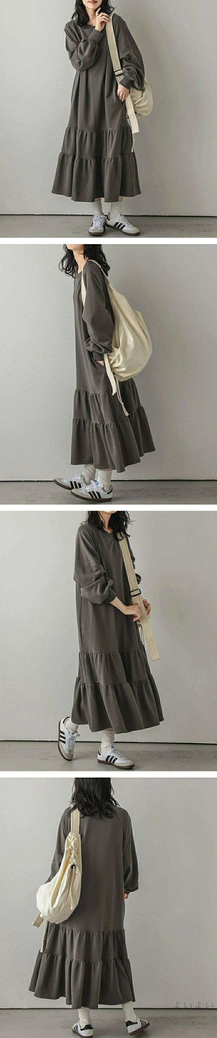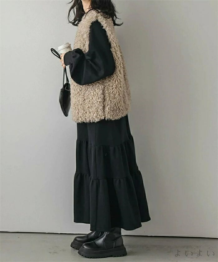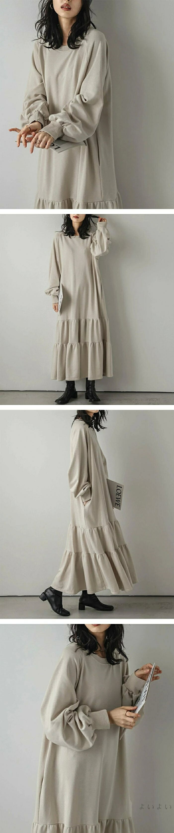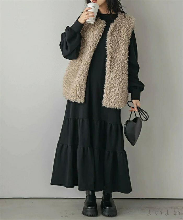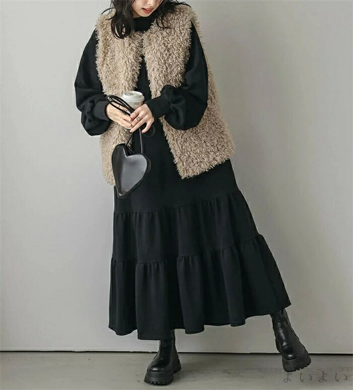 ワンピース ティアード 秋 ティアード ワンピース 続々登場 ブラック ベージュ ライトグレー ダークグレー M L