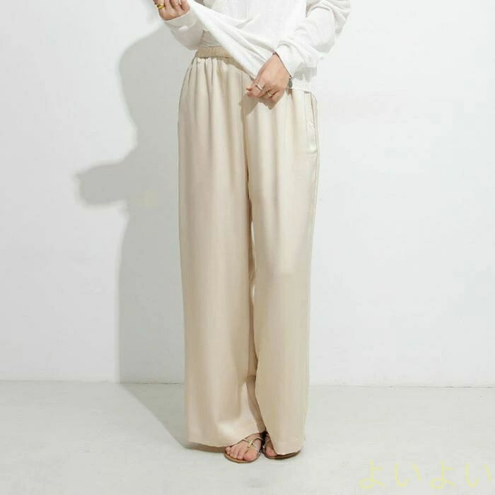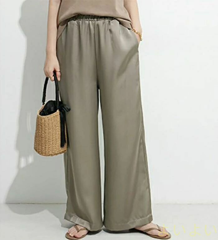パンツ レディース ワイドパンツ サテ レディースファッション 超目玉商品 ブラック ベージュ カーキグリーン シルバーグレー M L