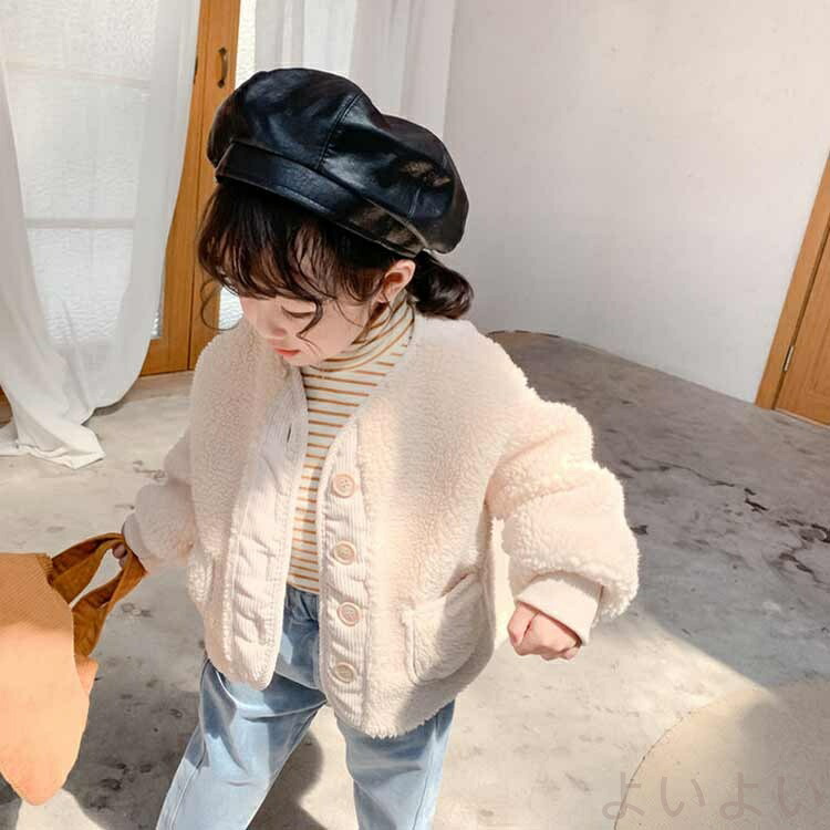 長袖 ボアジャケット 子供服 ボタン開 キッズ ベビー マタニティ 新登場! ベージュ ブラウン 80 90 100 110 120 130 140