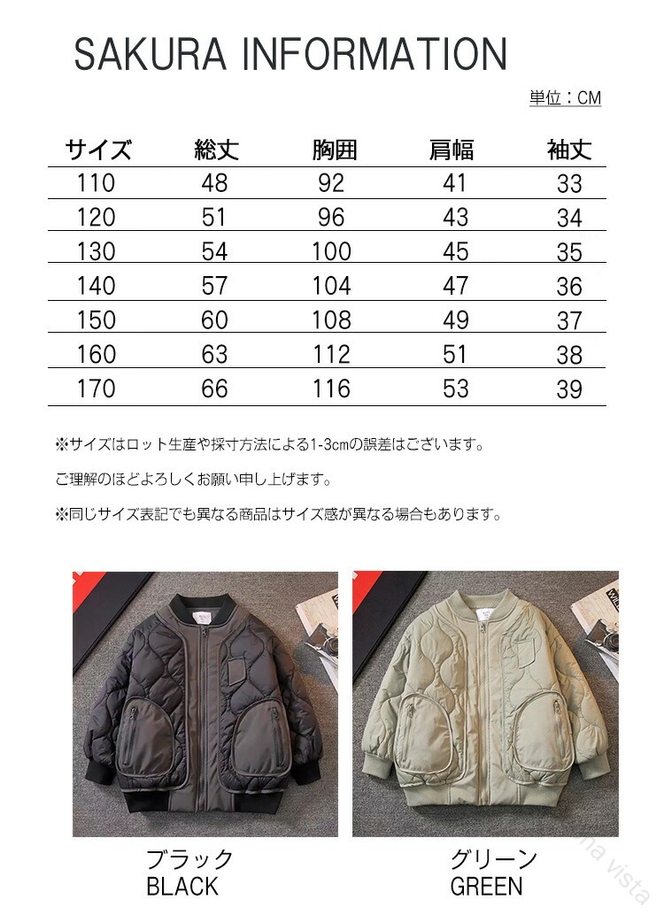 ブラック 黒 グリーン 緑 韓国子供服 韓国子ども服 韓国こども服 キッズ こども 子ども 子供 子供用 子供服 キッズ服 キッズサイズ ジュニア 小学生 男の子 ボーイズ アウター ジャケット ブルゾン MA-1 MA1 キルティングアウター キルティングコート キルティングジャケット キルトアウター キルトコート キルトジャケット キルティング キルト ダウン ダウンジャケット フェイクダウン 上着 羽織り 羽織 羽織もの 重ね着 レイヤード ノーカラー 襟なし 襟無し 長袖 長そで 十分袖 十分そで 10分袖 蓄熱 保温 蓄熱保温 防寒 防寒対策 暖かい あったかい あたたかい 中綿 ふわふわ もこもこ ふわもこ ふんわり フロントポケット 前ポケット ポケット 前開き フロントファスナー 前ファスナー フロントジッパー 前ジッパー ファスナー ジッパー チャック 無地 裏地 裏地付き ミリタリー 大きいサイズ 大きい 大きめサイズ 大きめ ゆったり 体型カバー 楽ちん 楽チン カジュアル ナチュラル おしゃれ オシャレ 可愛い かわいい きれいめ キレイめ プレゼント ギフト 6歳 7歳 8歳 9歳 10歳 11歳 12歳 13歳 14歳 15歳 16歳 17歳 秋 秋服 秋物 秋冬 冬 冬服 冬物 服 新作 新着 サクラ SAKURA