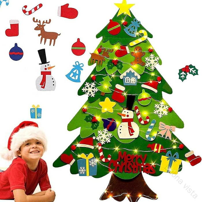 クリスマス 飾り 壁掛け フェルトクリスマスツリー オーナメント DIY LEDライトセット付き キッズ タペストリー 手作り フェルト飾り 32個入りセット 可愛い 幼稚園 保育園 親子で楽しめる