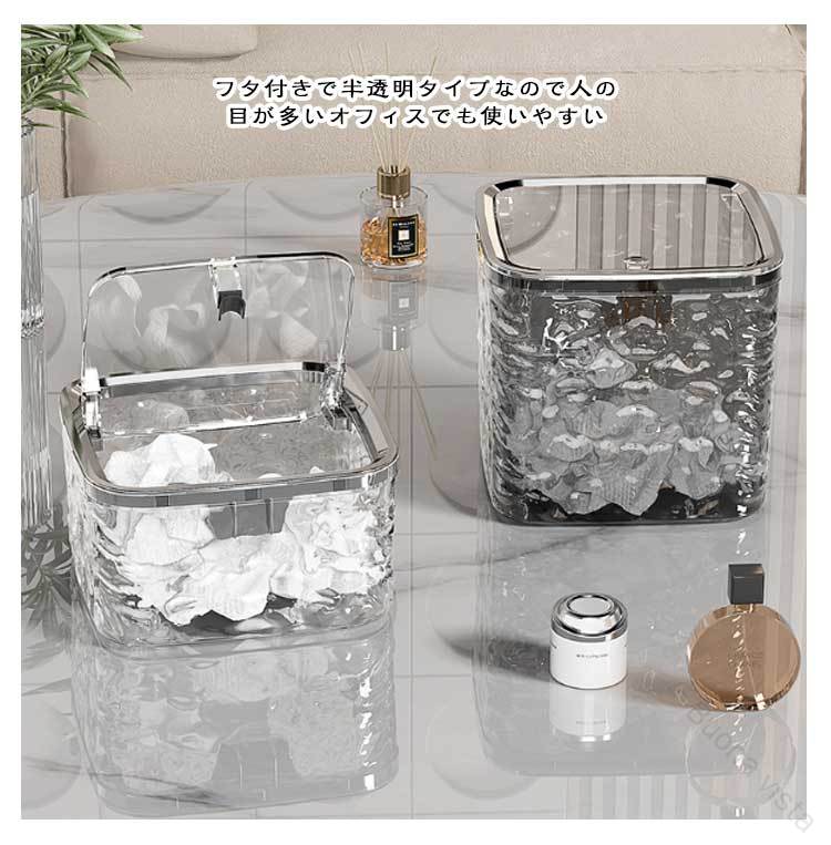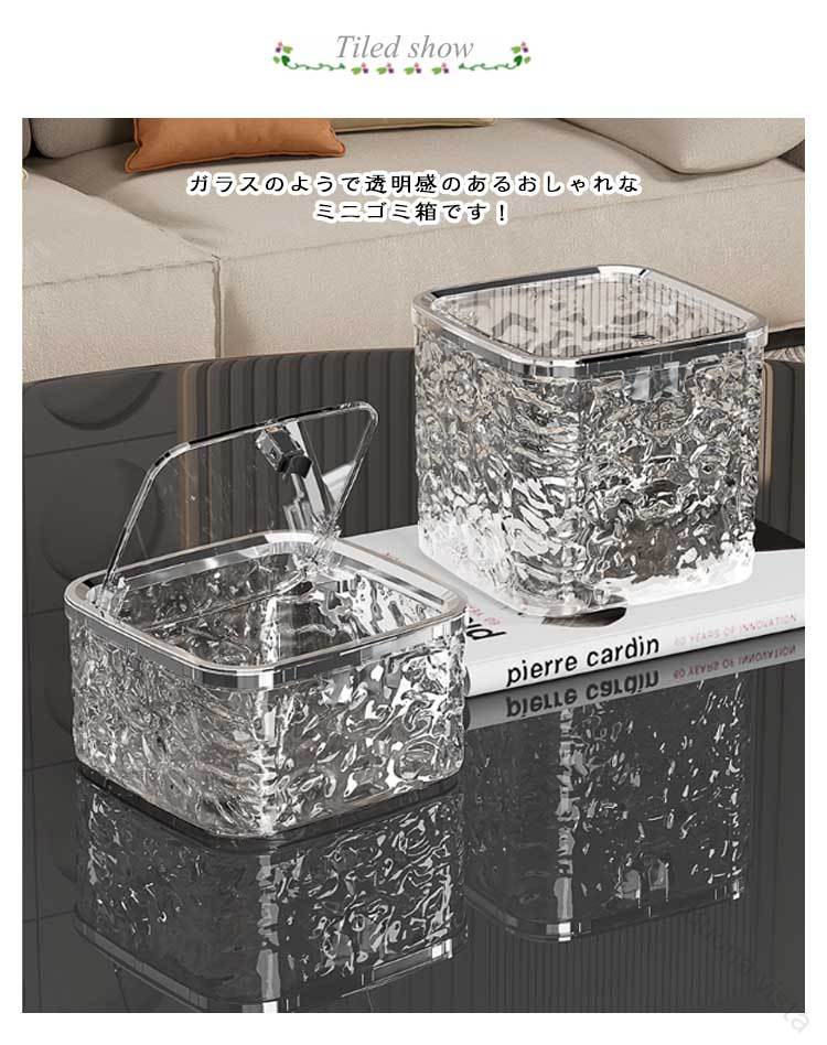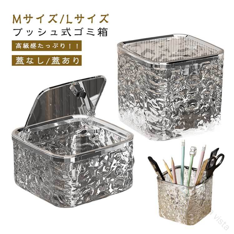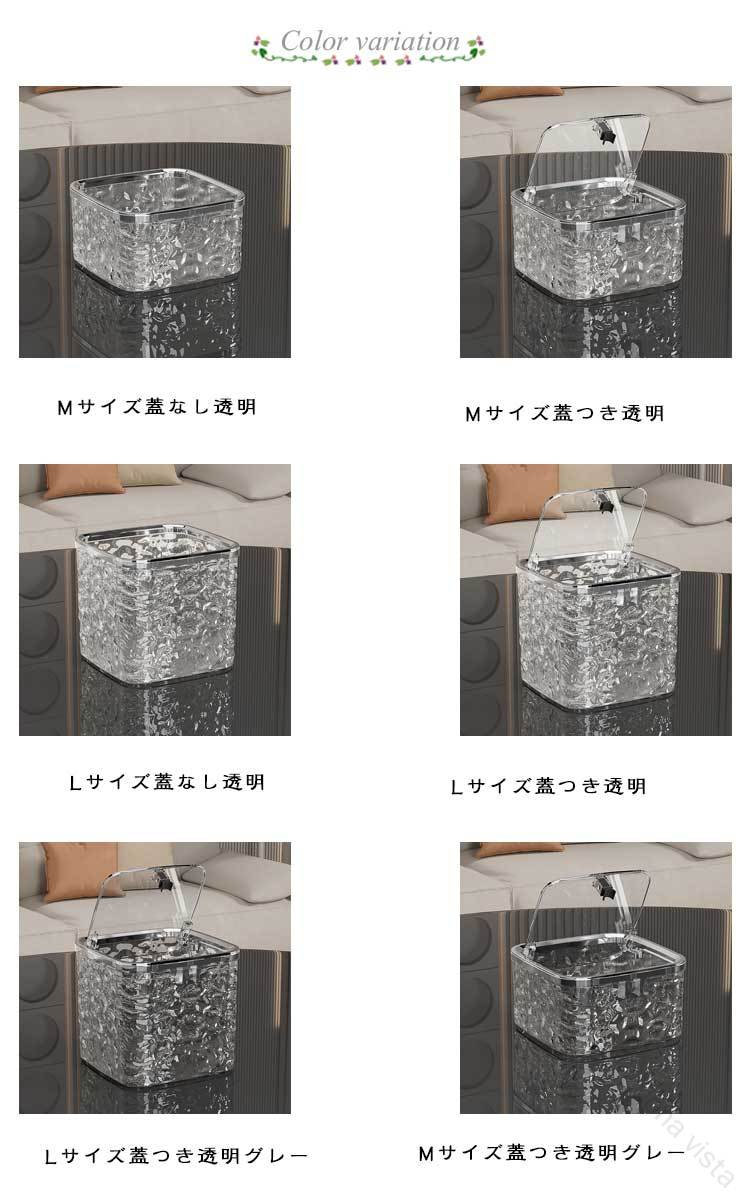 正方形 ゴミ箱 卓上収納 透明 卓上ゴ Mサイズ蓋なし透明 Mサイズ蓋つき透明 Lサイズ蓋なし透明 Lサイズ蓋つき透明 Lサイズ蓋つき透明グレー Mサイズ蓋つき透明グレー