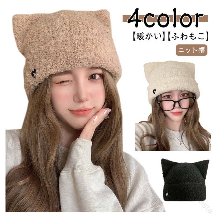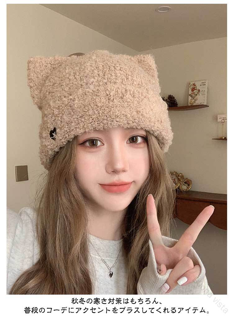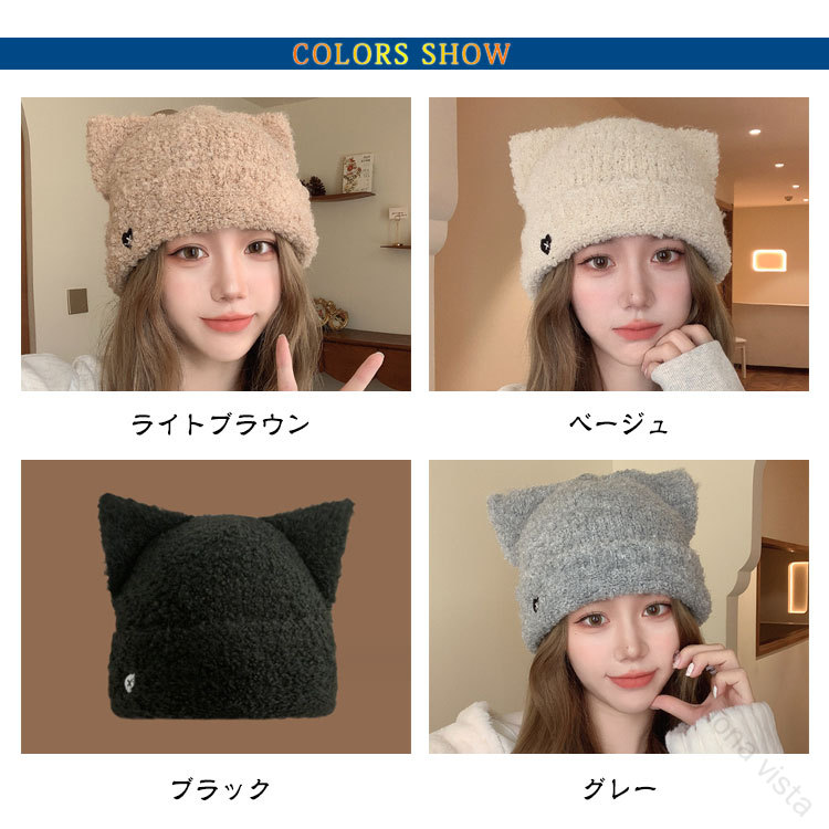 帽子 猫耳 ニット帽 レディース ネコ バッグ 小物 ブランド雑貨 通販 ライトブラウン ベージュ グレー ブラック
