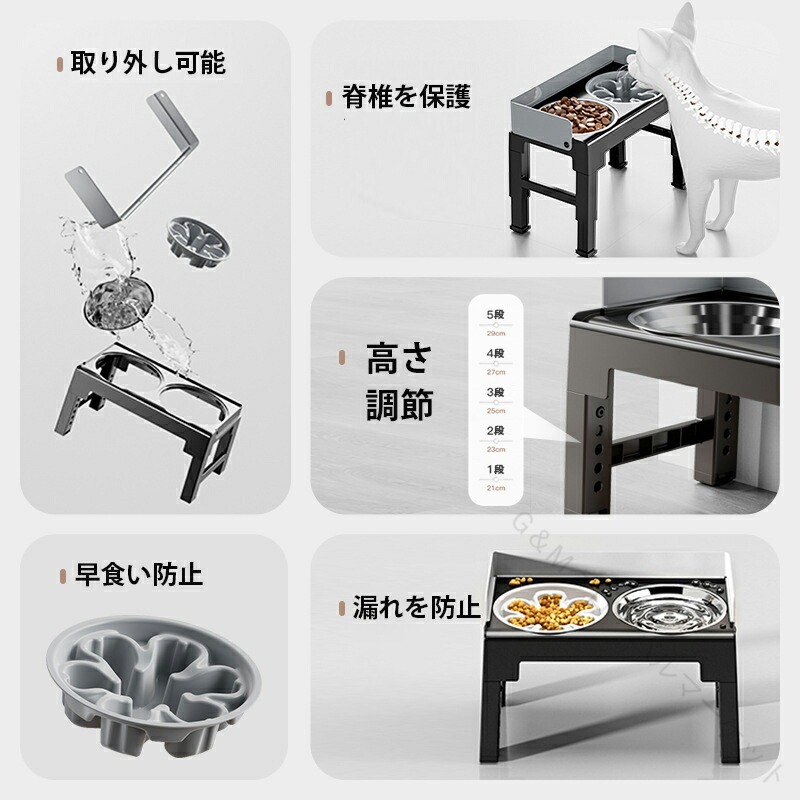 昇降式フードボウル犬用 食器台 高さ調 TYPE-1/ブラック TYPE-1/グレー TYPE-2/ブラック TYPE-2/グレー