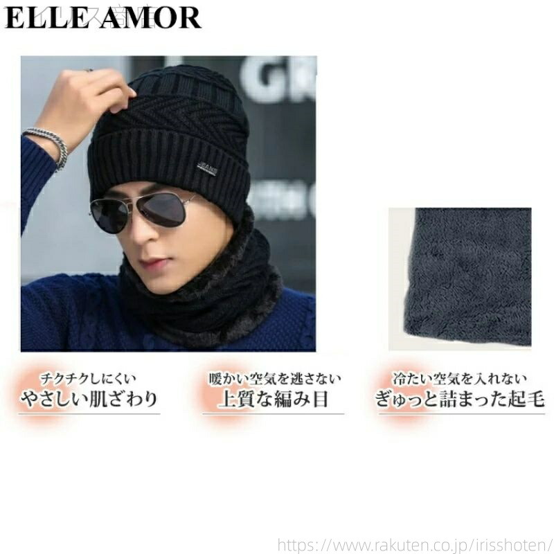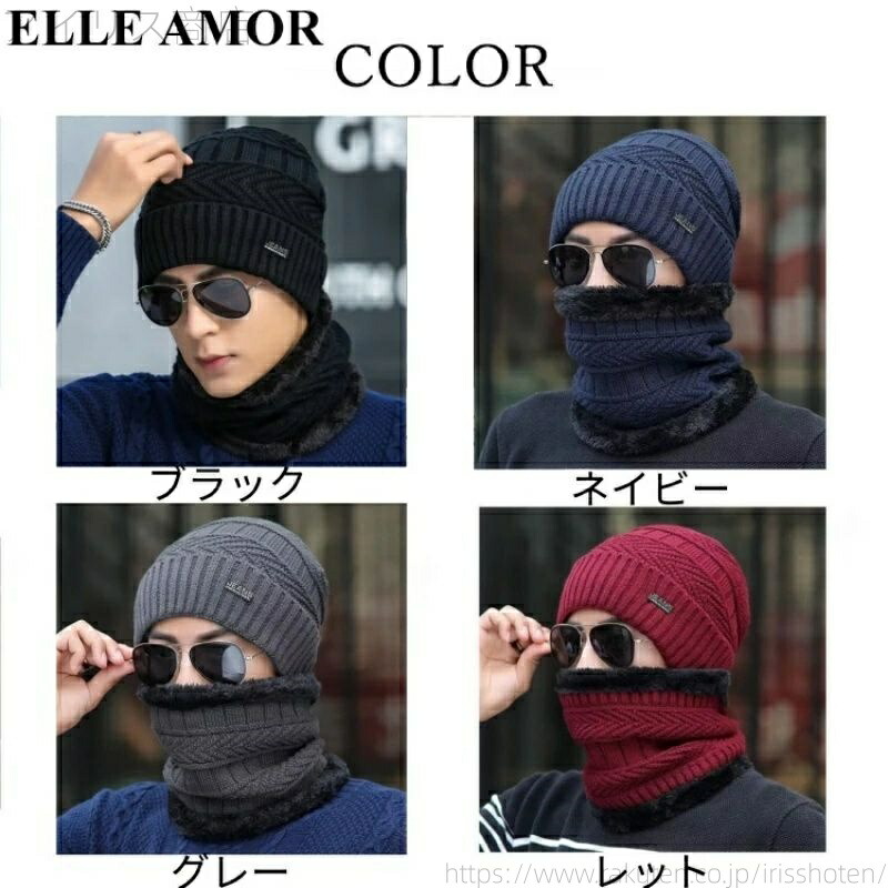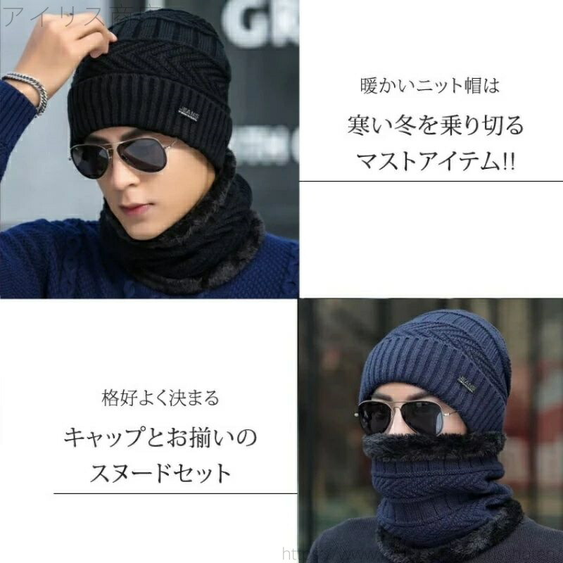 メンズ スヌード 2点セット 防寒 暖 帽子 メンズ帽子 ニット帽 人気 ブラック ネイビー グレー レッド