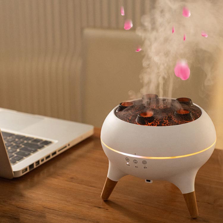 火山加湿器 自動オフ機能 アロマセラピー加湿器 加湿器 ハイブリッド加湿器 超音波加湿器 アロマディフューザー 7色LED 2WAY噴霧モード リモコン付き クラゲモ アロマ対応 アロマセラ 音声操作