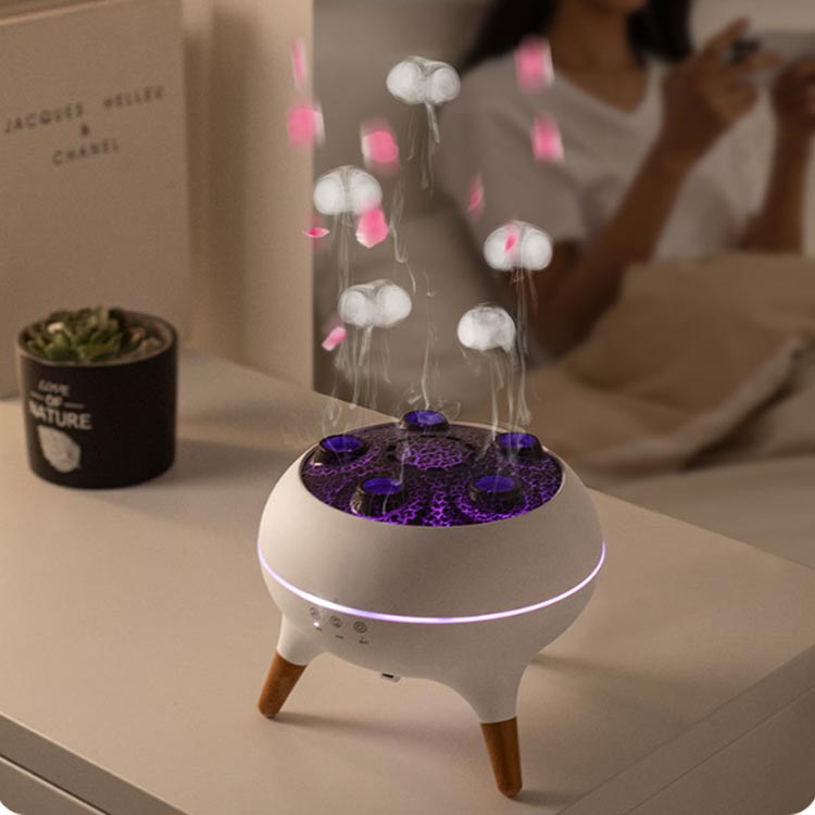 最大の特徴は、音楽のリズムや音声に反応して、煙がクラゲのようにふわふわと踊りだす「クラゲモード」 。まるで水槽の中のクラゲのように優雅に漂うミストは、見ているだけでリラックスでき、SNSでも話題間違いなしの神秘的な光景をお楽しみいただけます。もうひとつの「ストレートミストモード」 では、従来の加湿器のようにしっかりと湿度を補給。ご用途やお気分に合わせて、2種類の噴霧モードをお選びください。