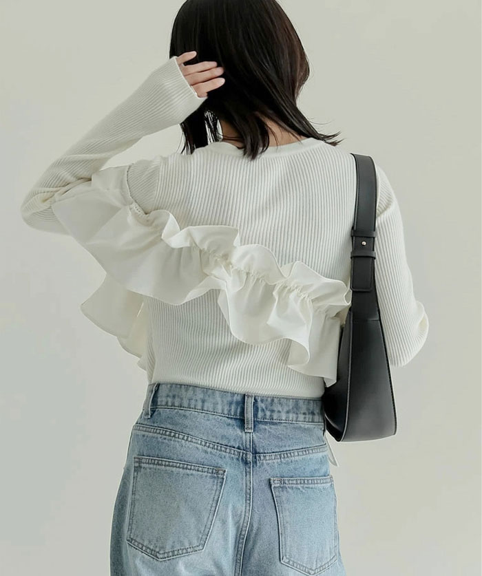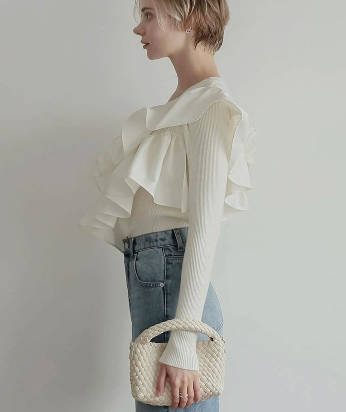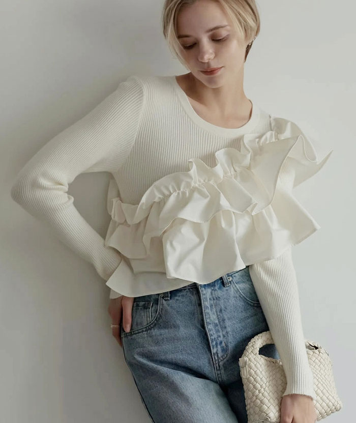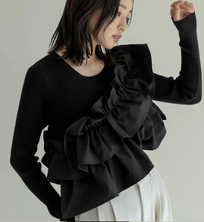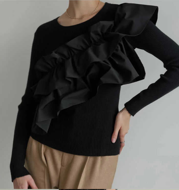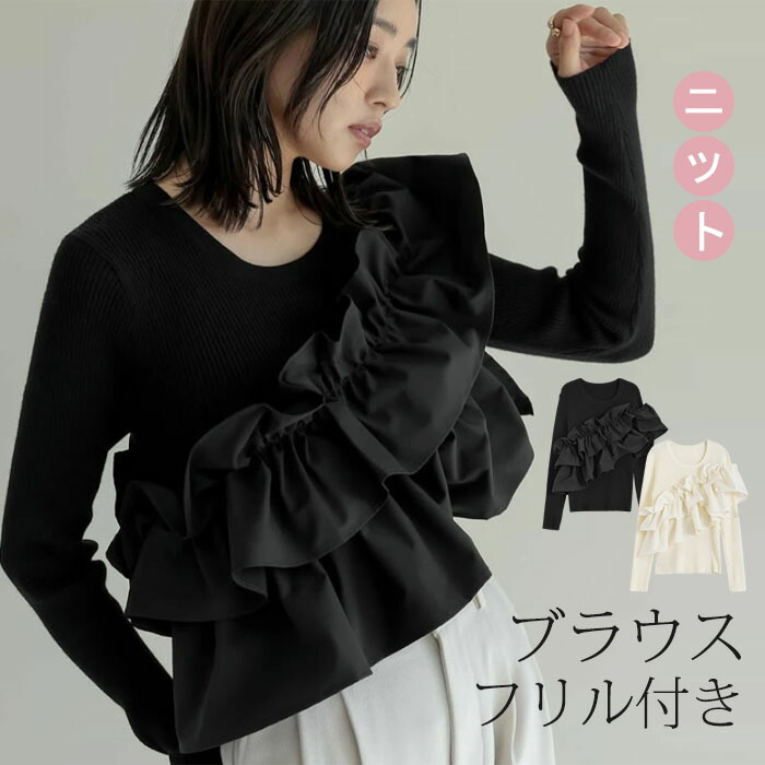 セーター フリル プルオーバー 春 秋 レディースファッション 豊富な品揃え ブラック アイボリー