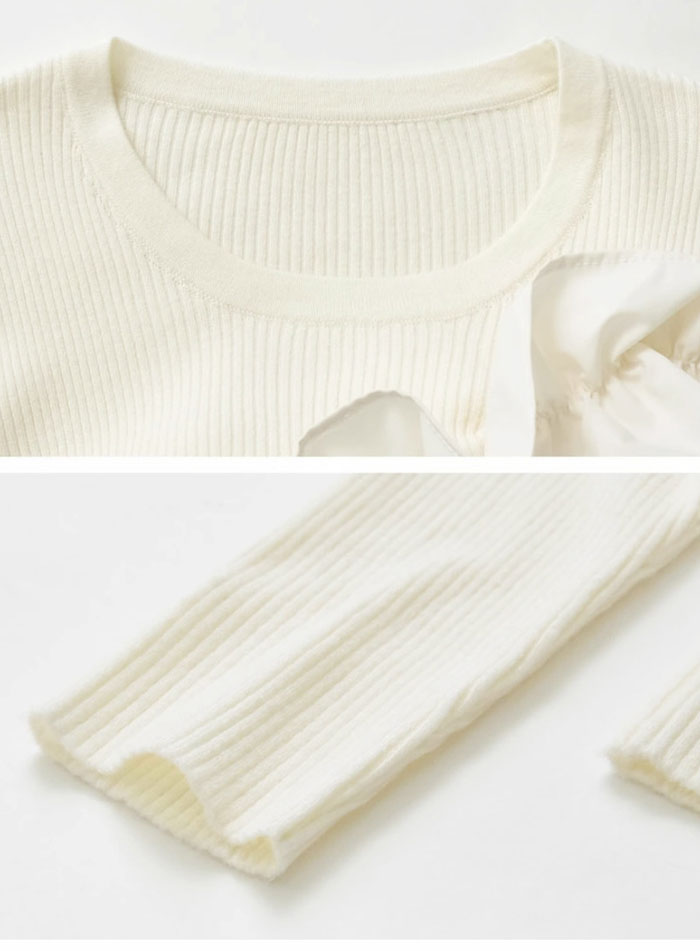 シアースリーブ ドッキングシャツ ボウタイシャツブラウス