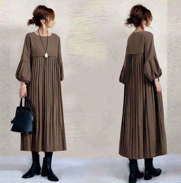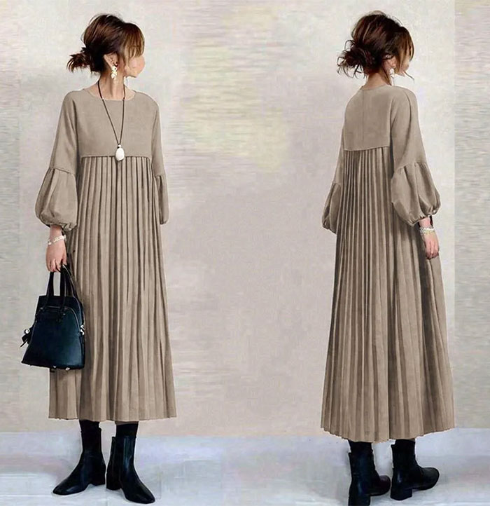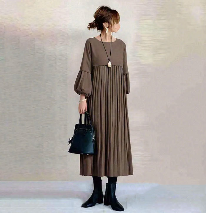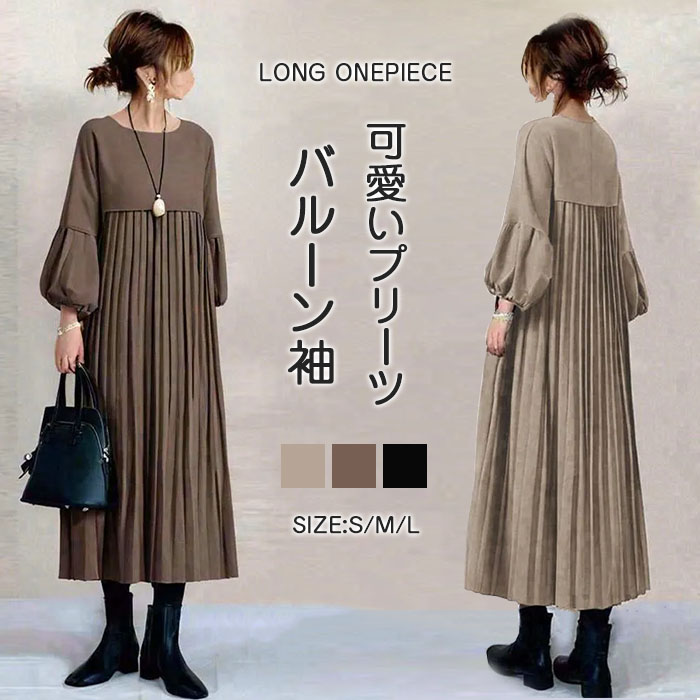 ワンピース ギャザー レディース 大人 レディースファッション 続々登場 S M L ブラウン ベージュ ブラック