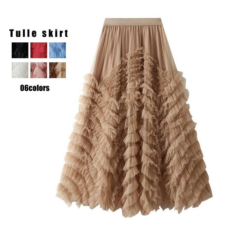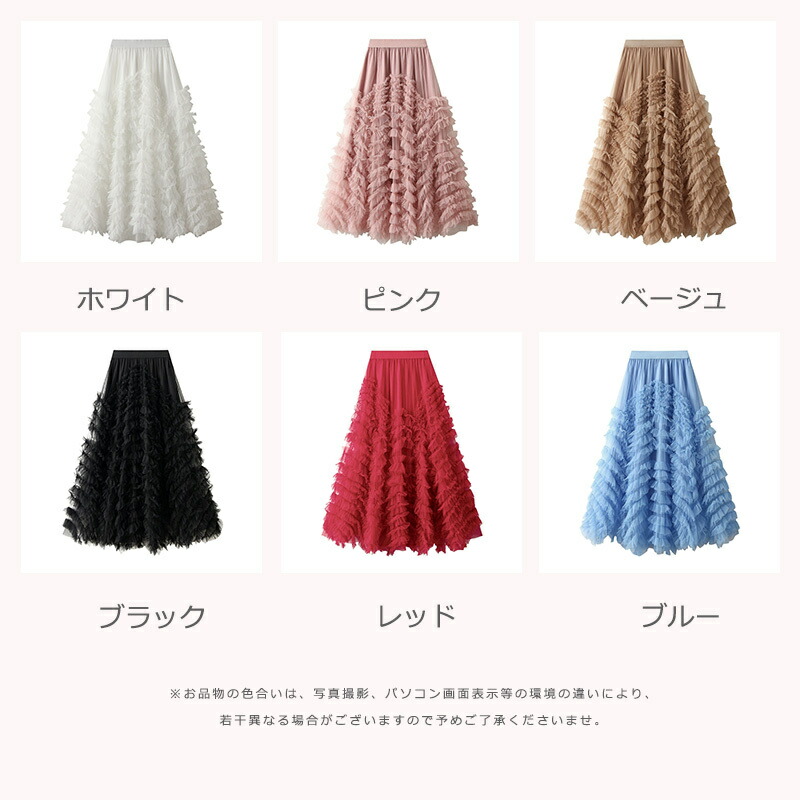 チュールスカート ボリューム 大人 ロ ボトムス スカート 通販 ホワイト ピンク ベージュ ブラック レッド ブルー