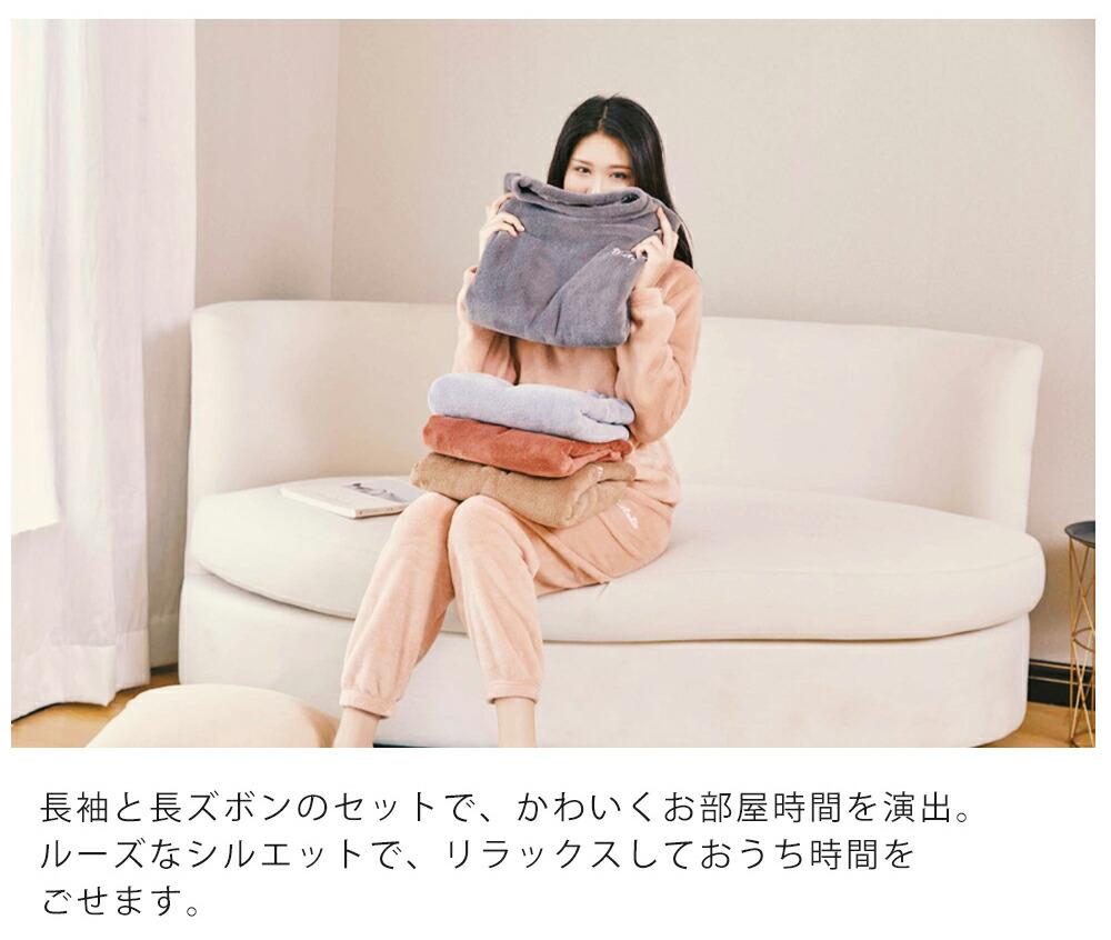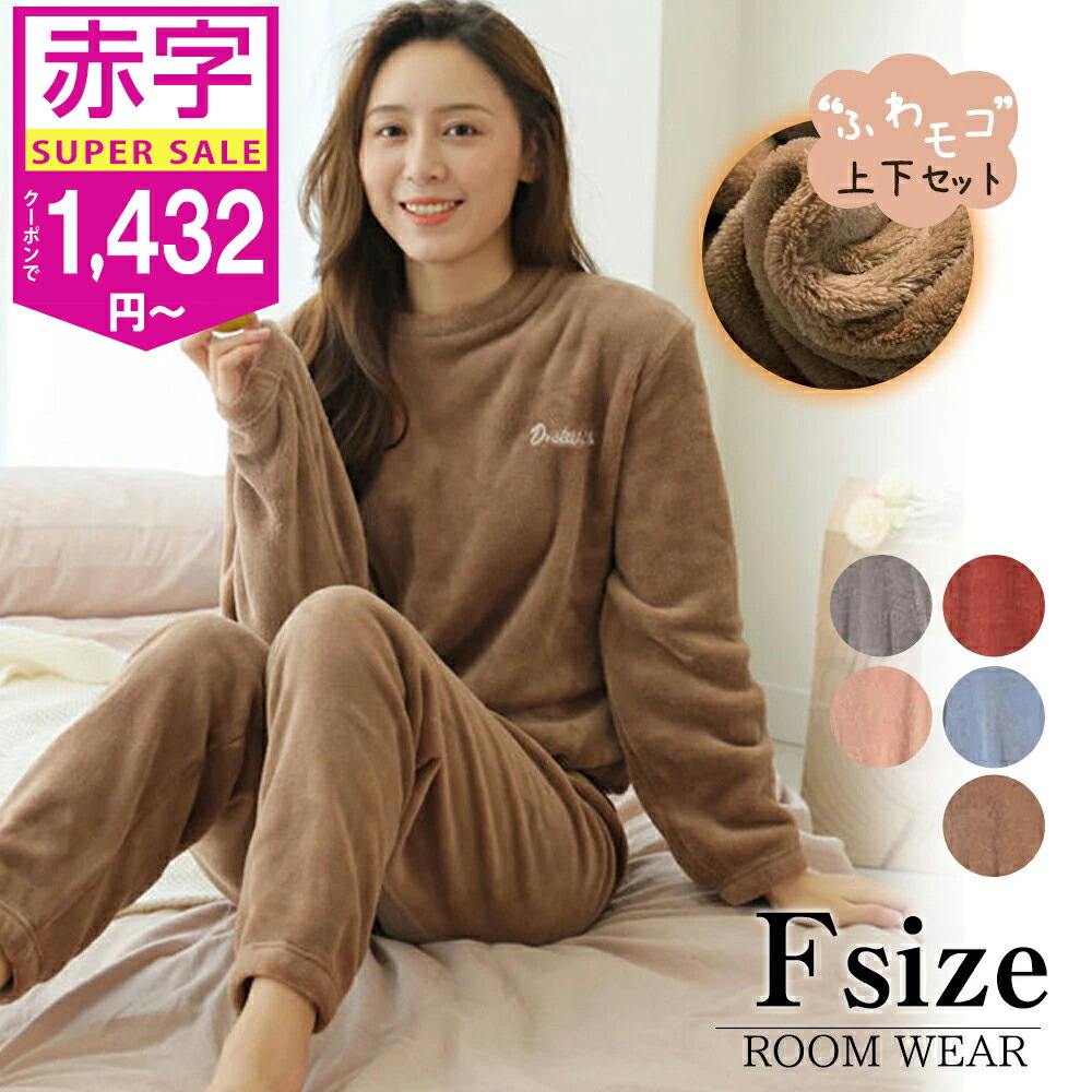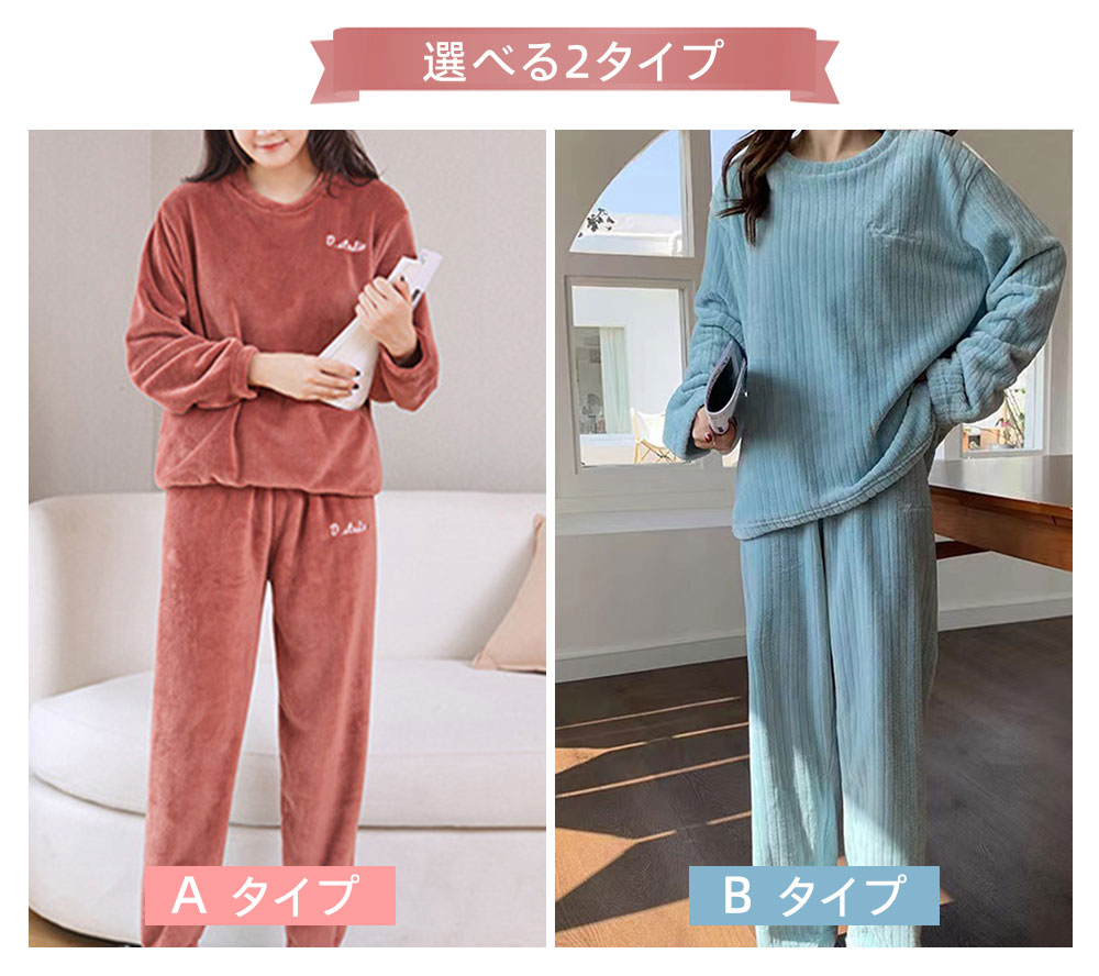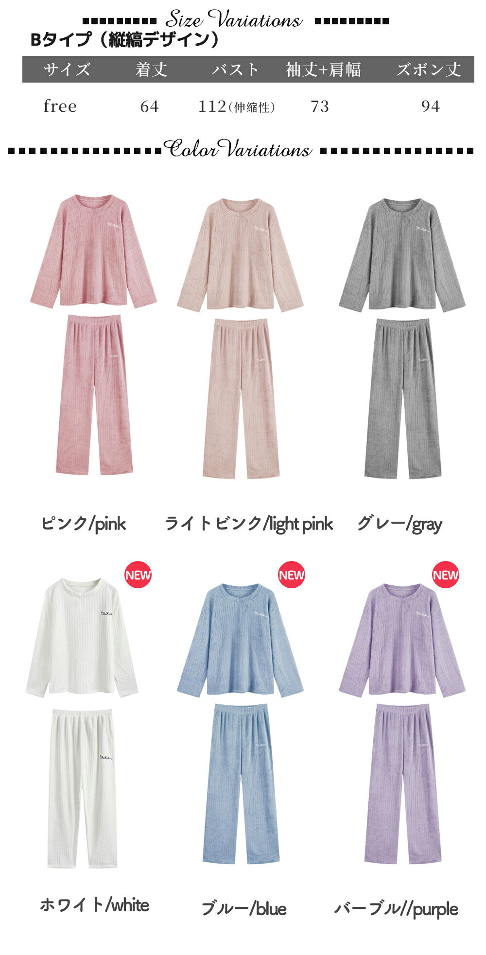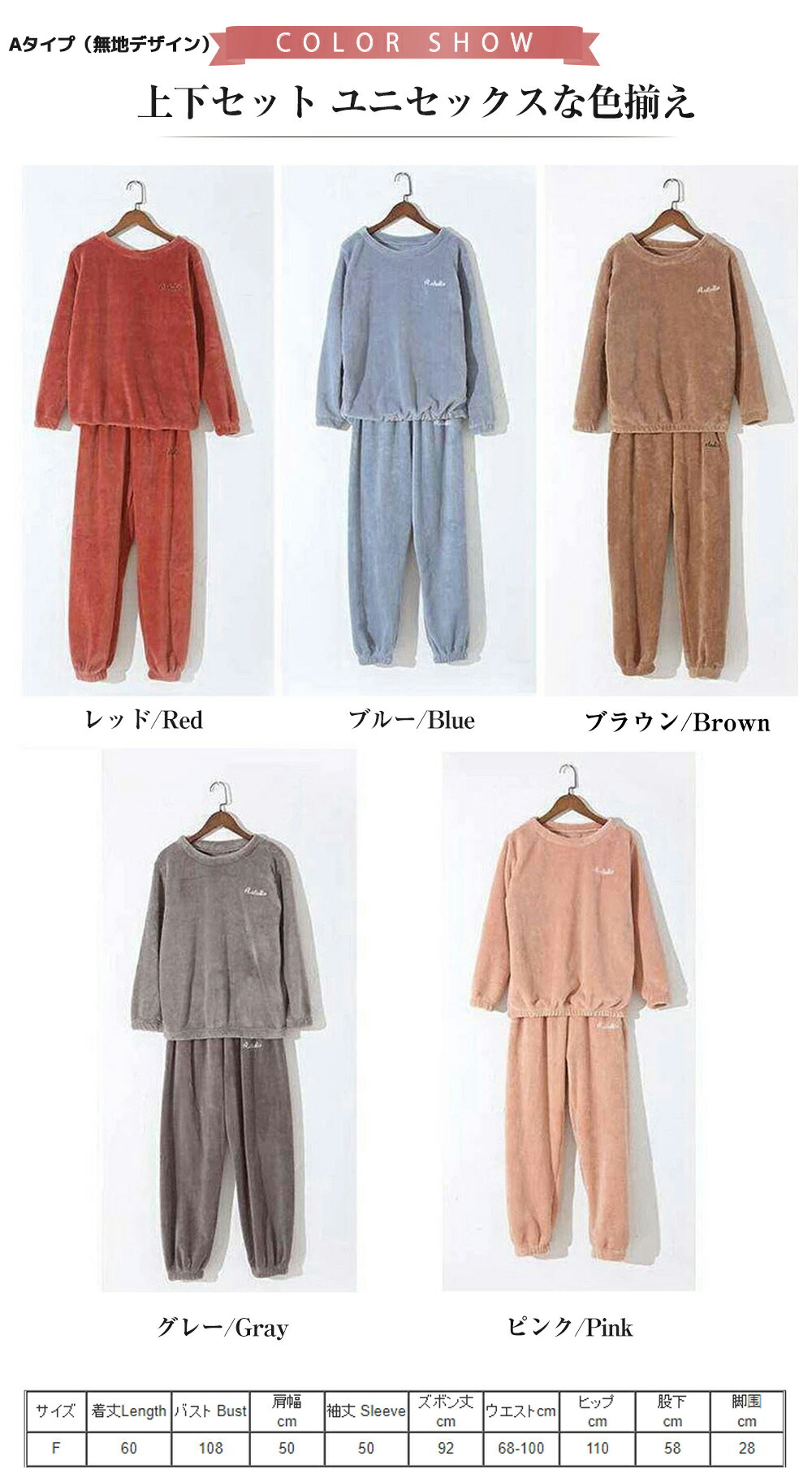 パジャマ ふわっも 上下セット フリー インナー 下着 ナイトウエア 新登場! Aタイプ(無地デザイン) Bタイプ(縦縞デザイン) レッド ブラウン ピンク ホワイト