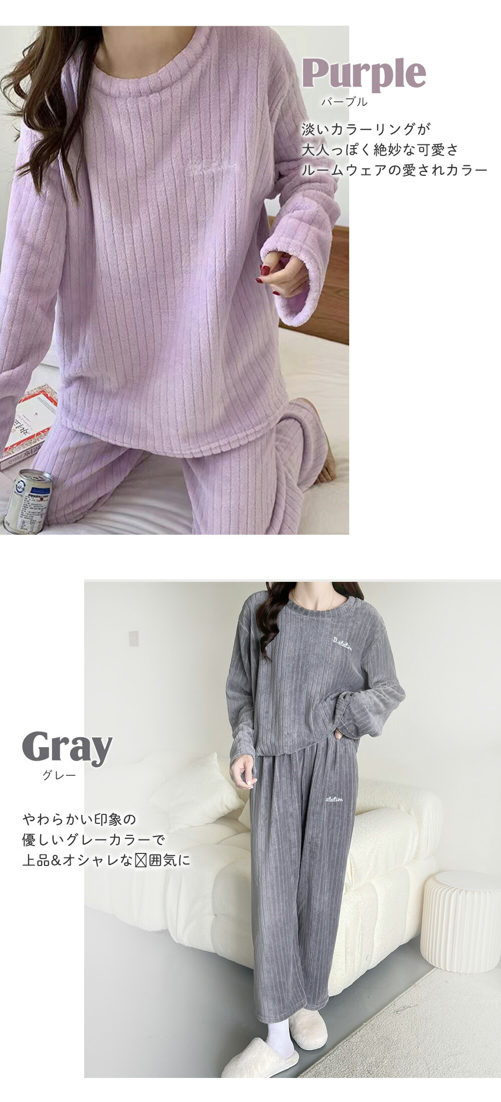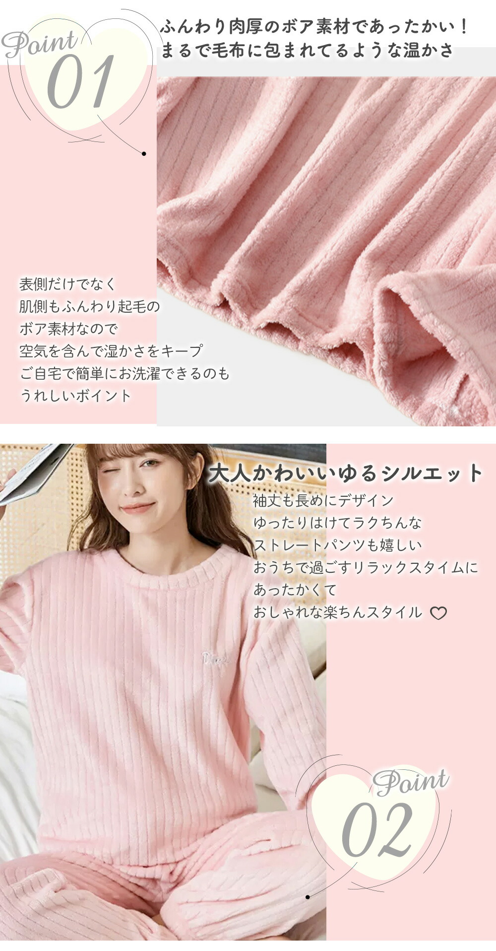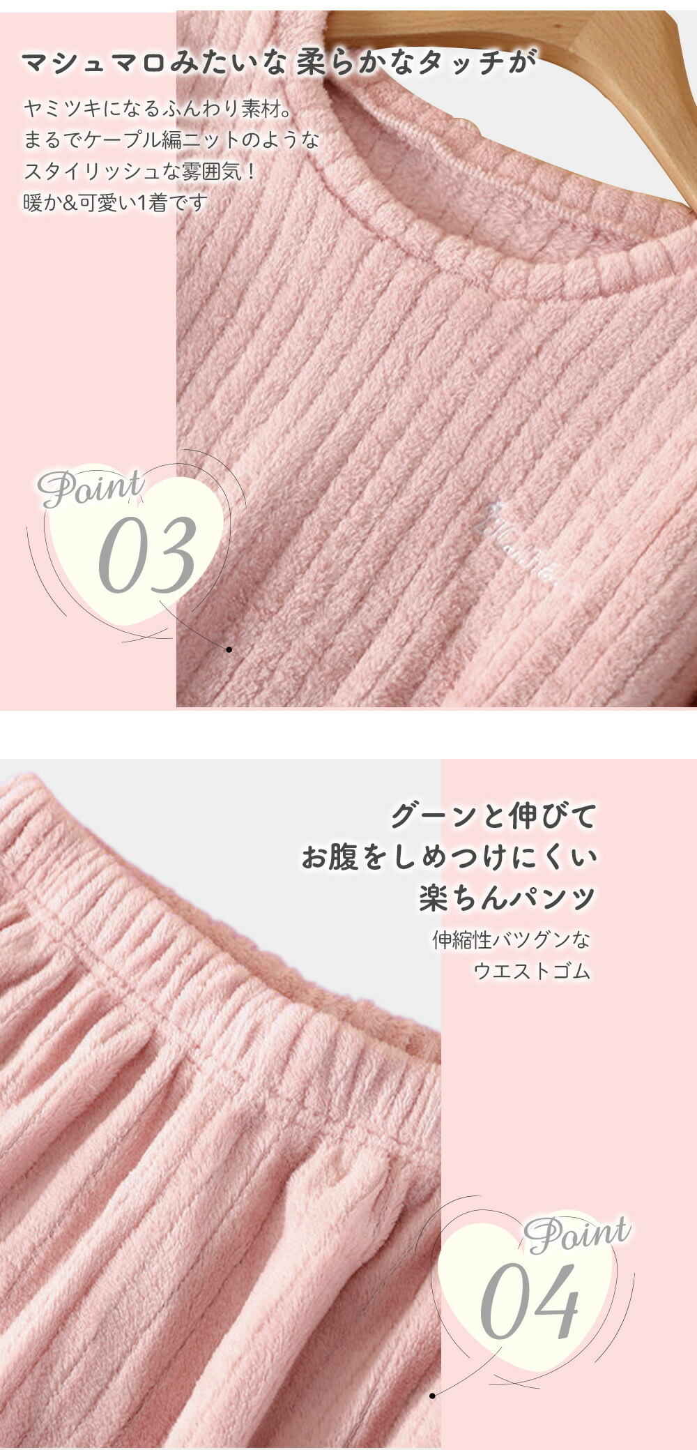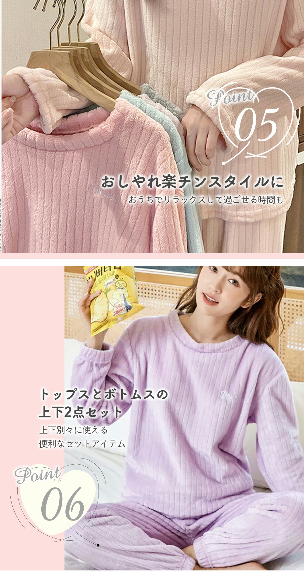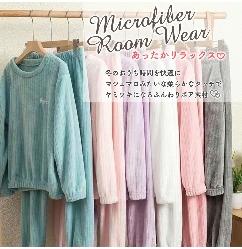パジャマ ふわっも 上下セット フリー インナー 下着 ナイトウエア 新登場! Aタイプ(無地デザイン) Bタイプ(縦縞デザイン) レッド ブラウン ピンク ホワイト