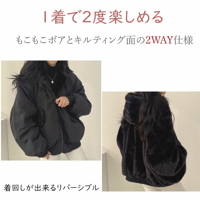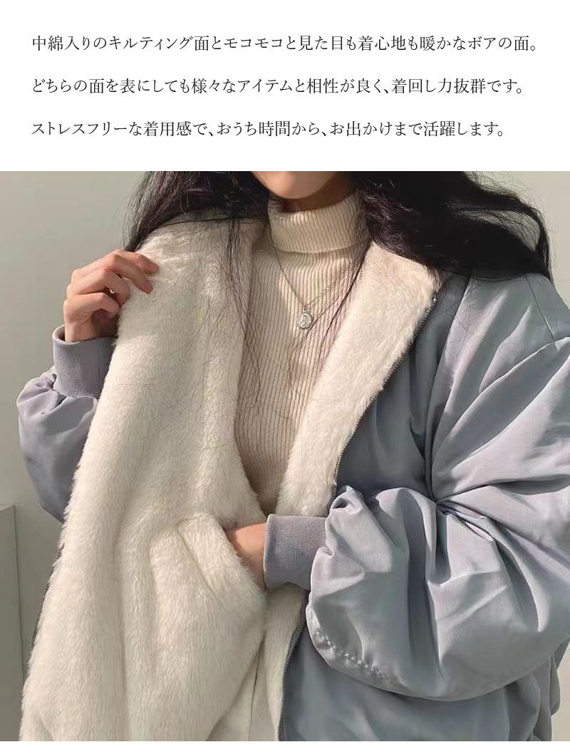 リバーシブル フード付き ボアブルゾン レディースファッション 早い者勝ち ベージュ ブラック ブルー S M L XL