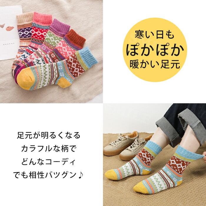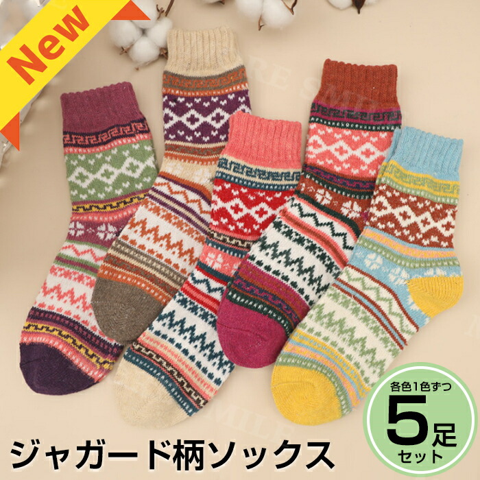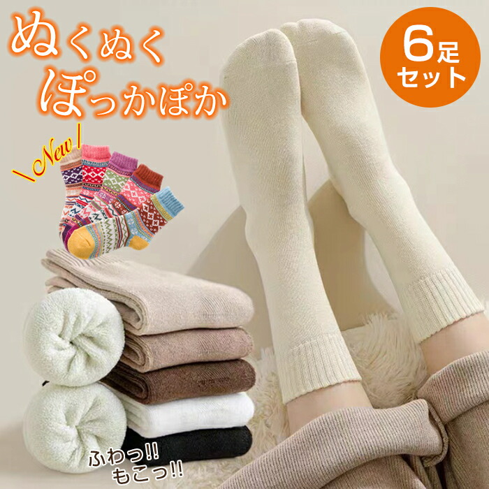 靴下 レディース 冬 暖かい 6足セッ インナー 下着 ナイトウエア 豊富 無地タイプ(6足) ジャガード柄タイプ(5足)