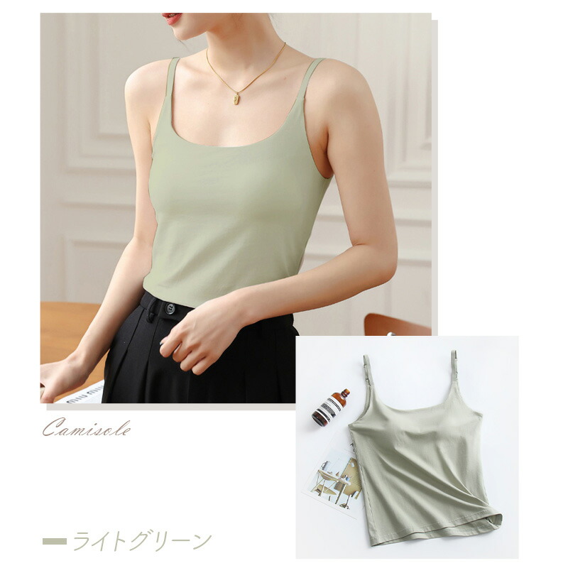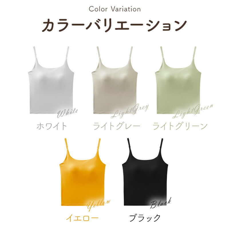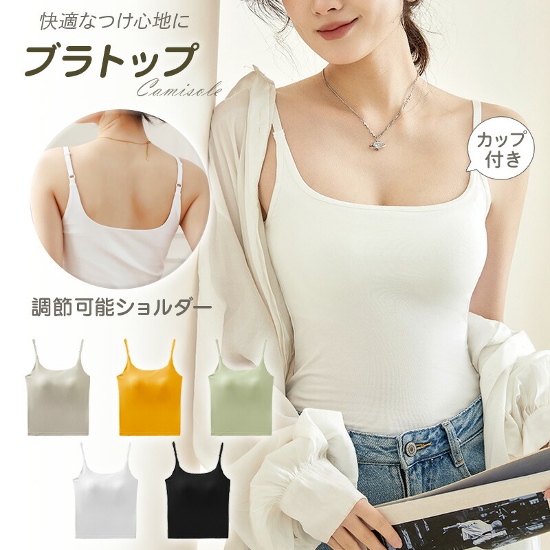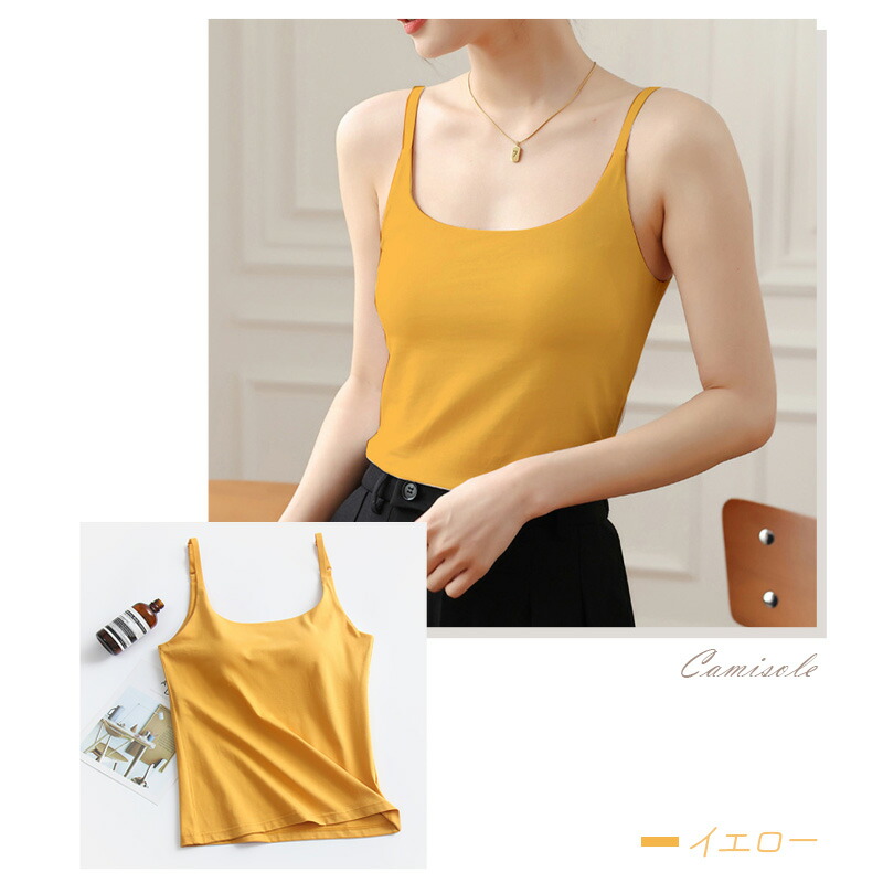 キャミソール カップ付き パッド付 パ レディース インナー 下着 ブラトップ 大人気! ブラック ホワイト ライトグレー イエロー ライトグリーン S M L XL