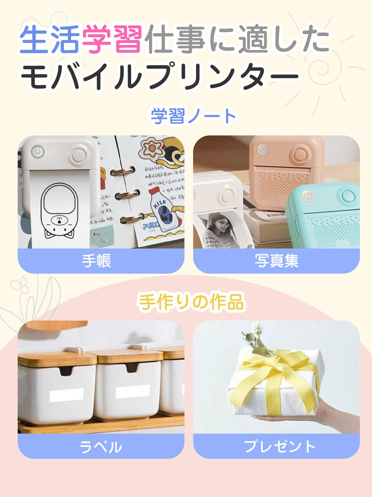 ミニプリンター ラベルプリンター スマ ホワイト ベビーブルー ベビーピンク