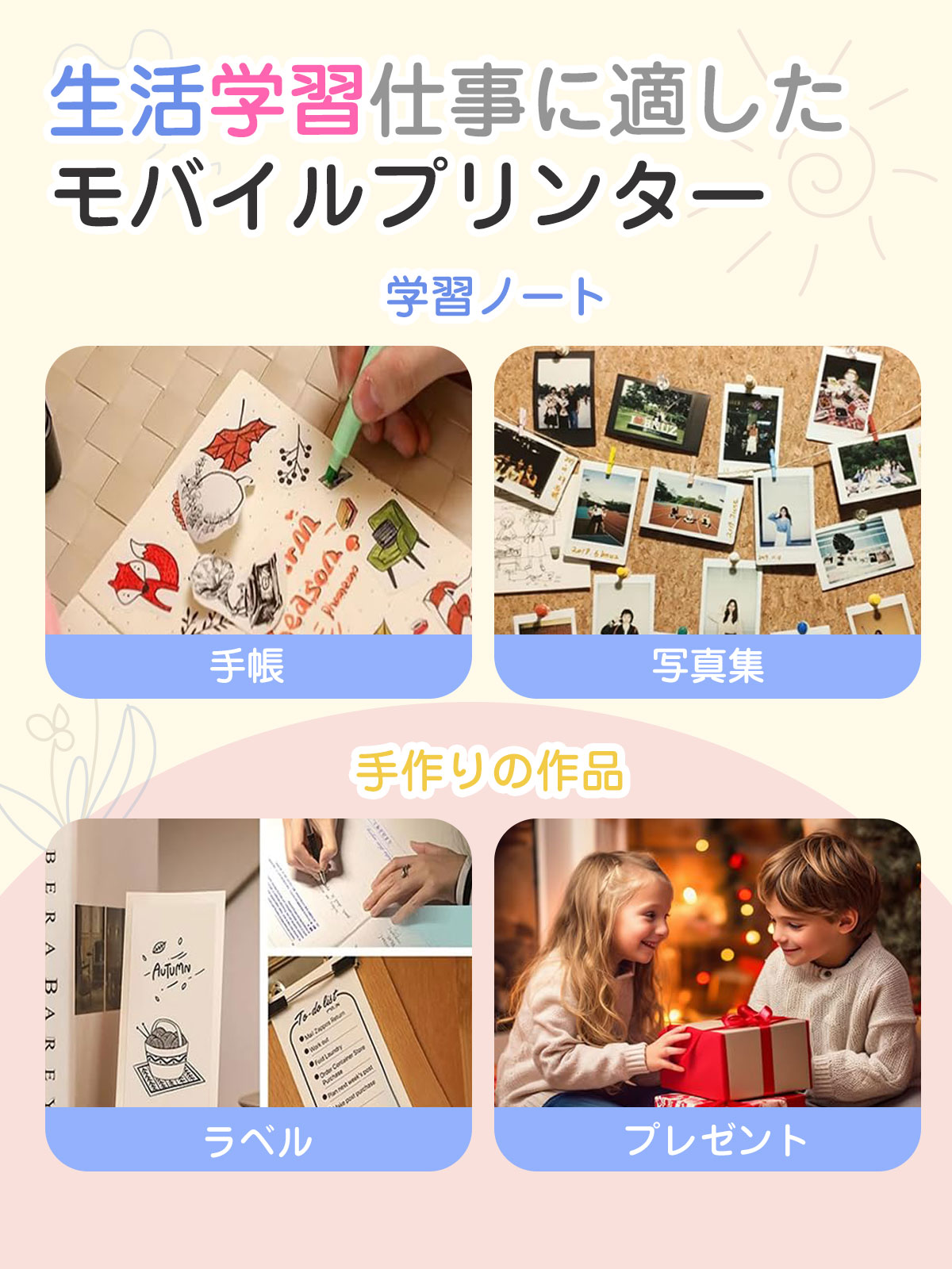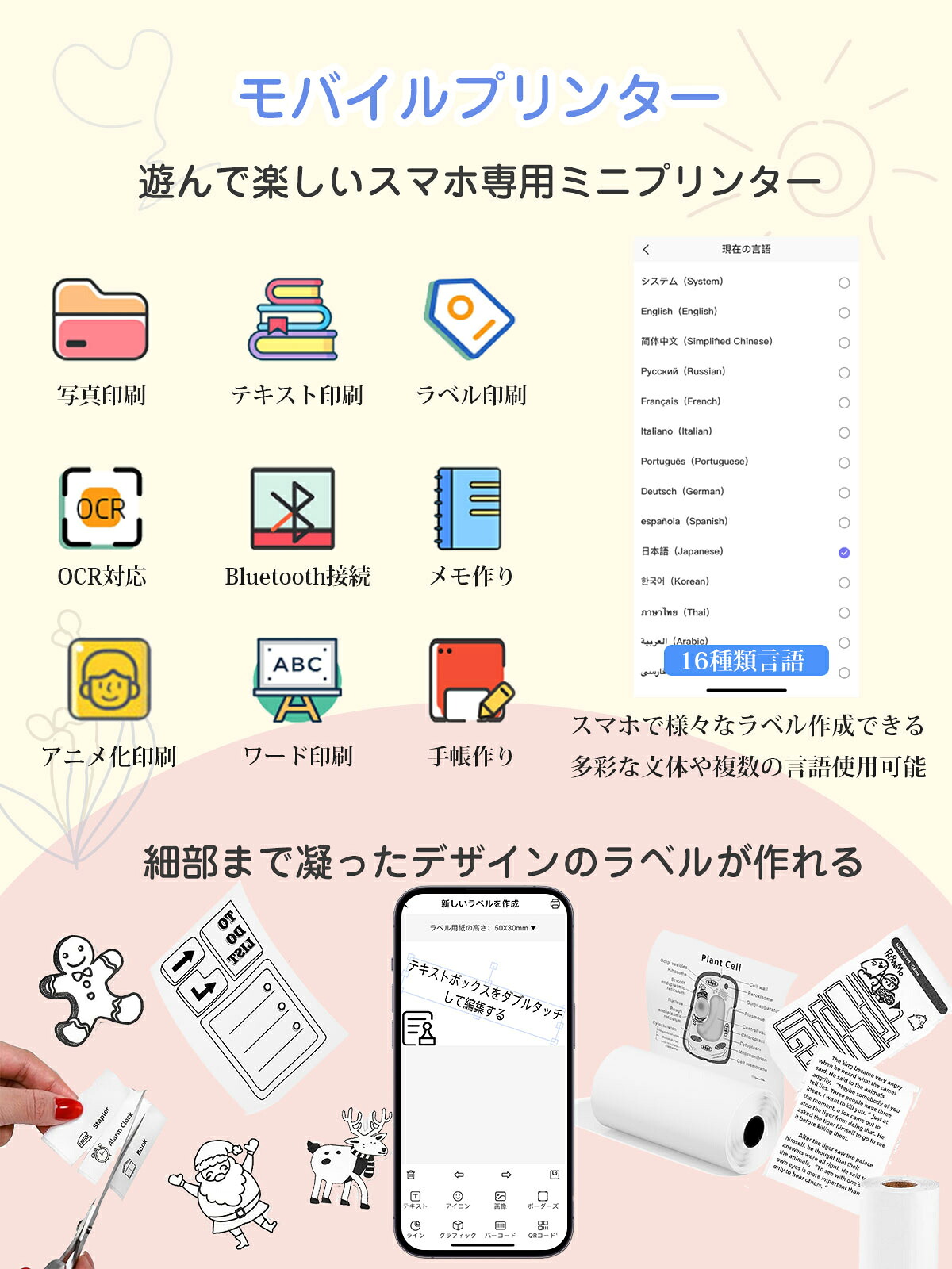 ミニプリンター ラベルプリンター スマホ対応 ポケットプリンター モバイルプリンター 小型 Bluetooth 感熱プリンター コンパクト 写真フォトプリンター 持ち運び便利 旅行 ラベルライター