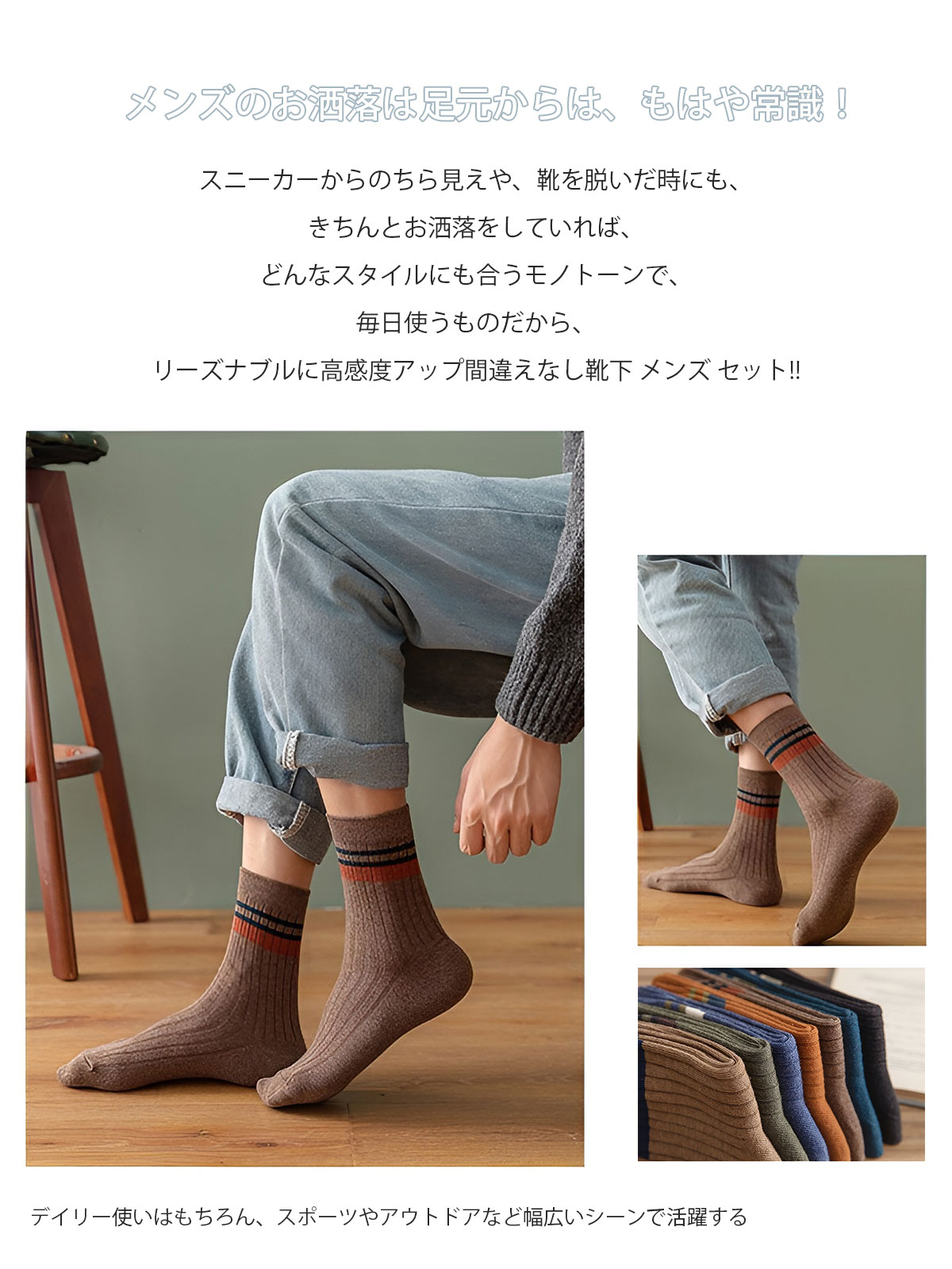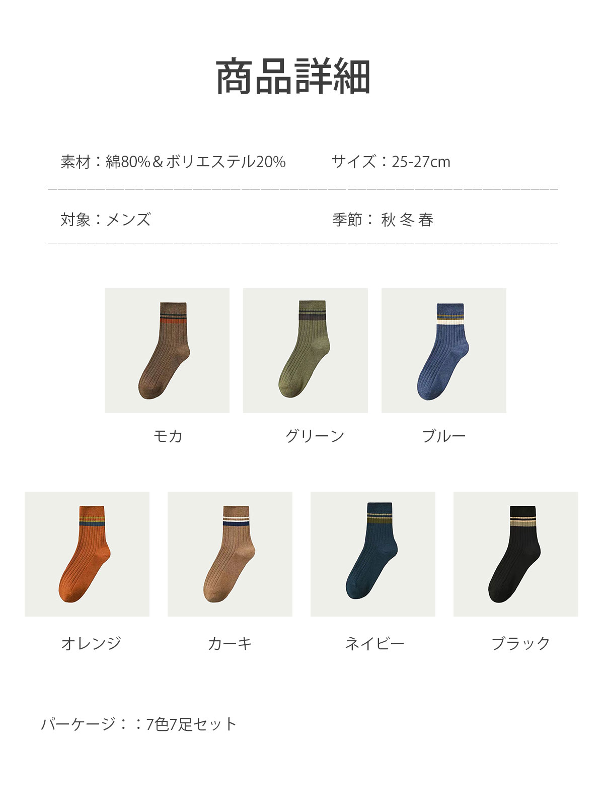 靴下 メンズ 7足セット 男性用 クル メンズ 靴下 レッグウェア 靴下 続々入荷中