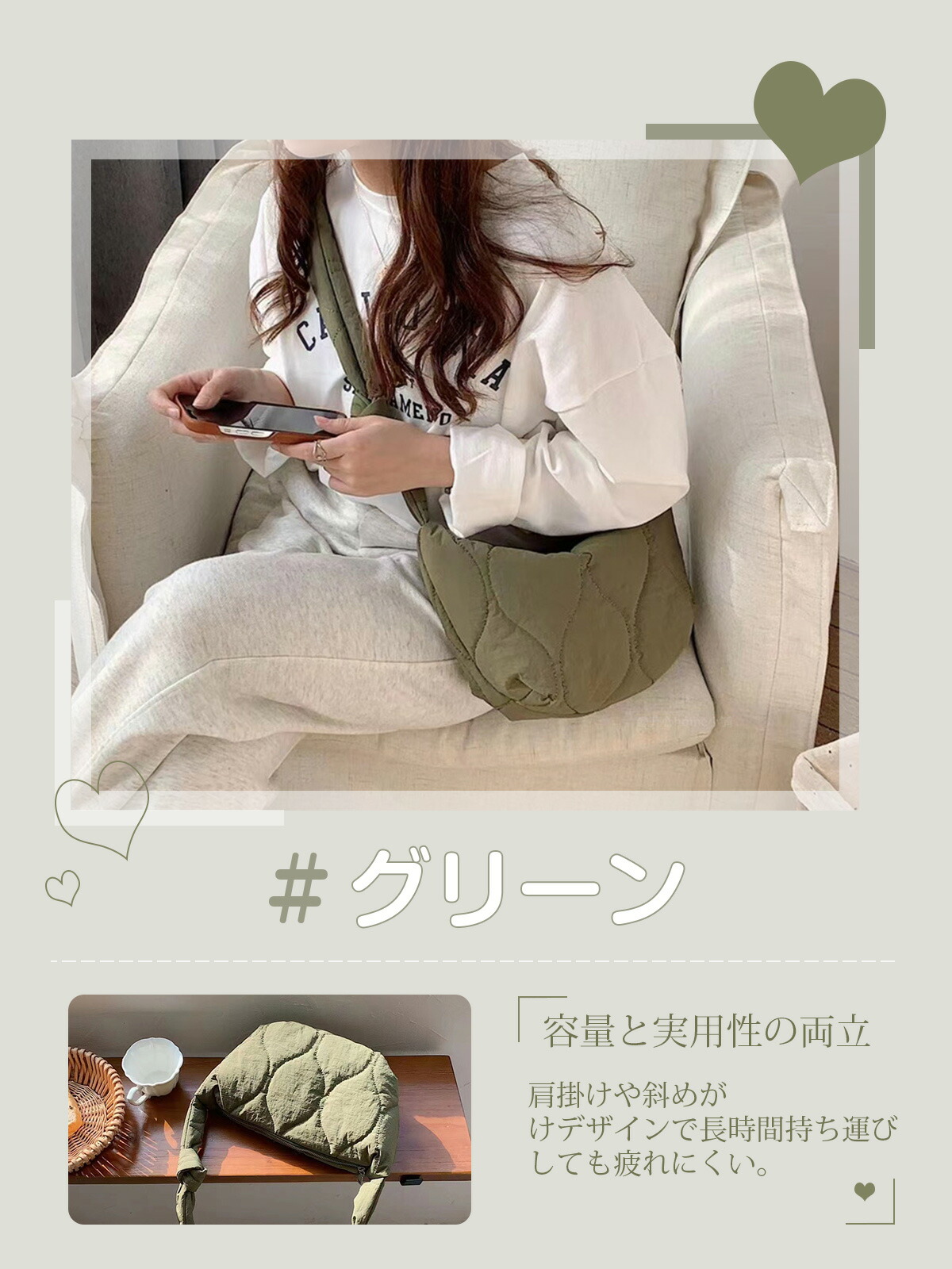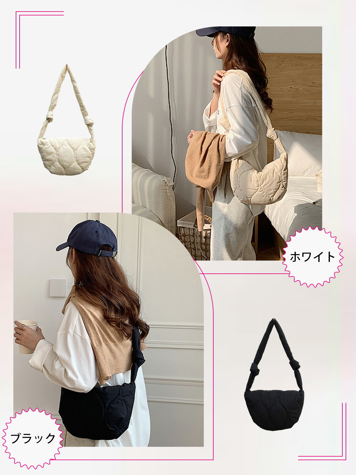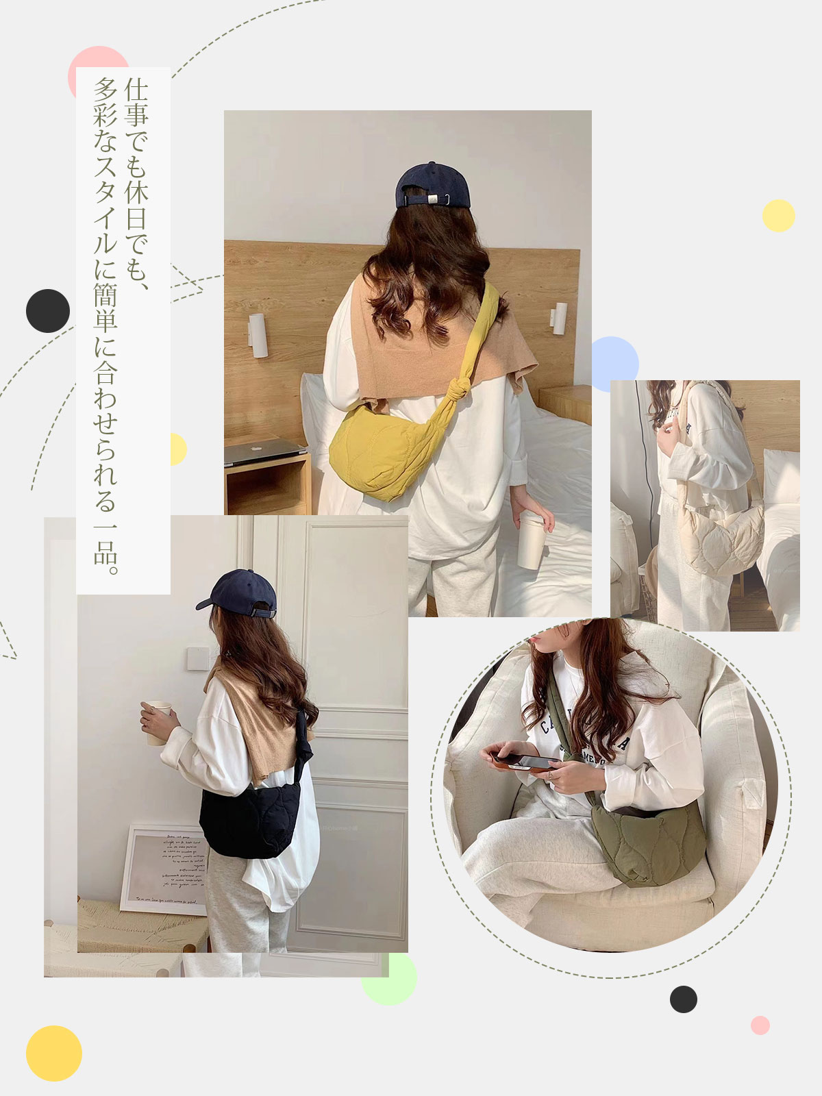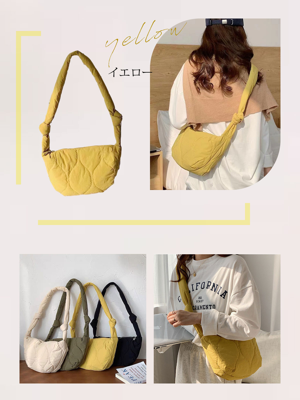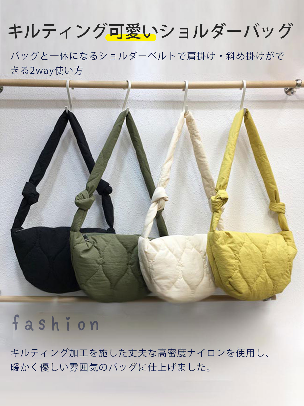 キルティングショルダーバッグ 三日月型 バッグ 小物 ブランド雑貨 新作 ブラック イエロー グリーン オフホワイト