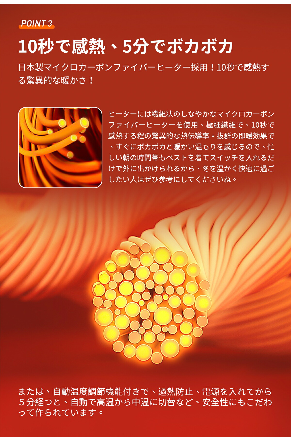 日本製マイクロカーボンファイバーヒーター採用!10秒で感熱する驚異的な暖かさ!