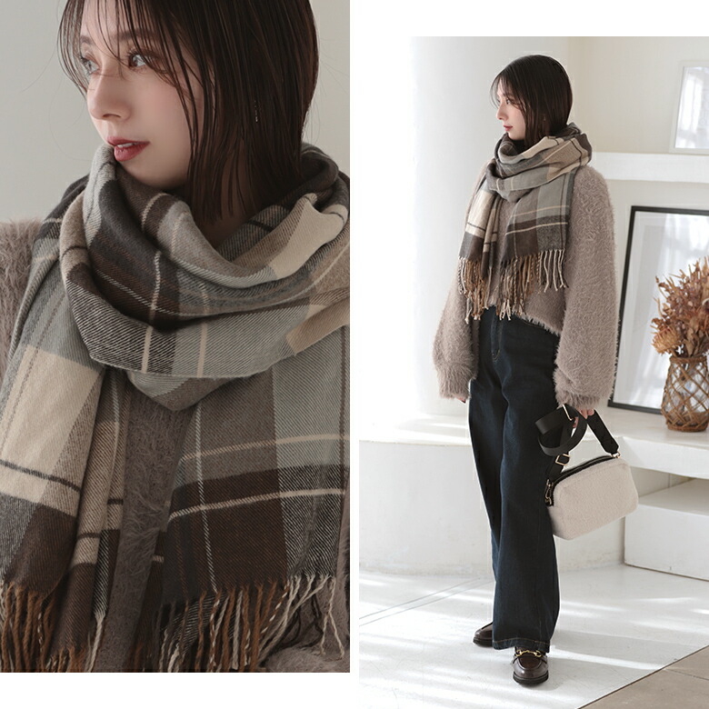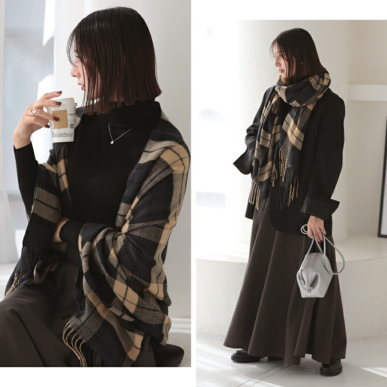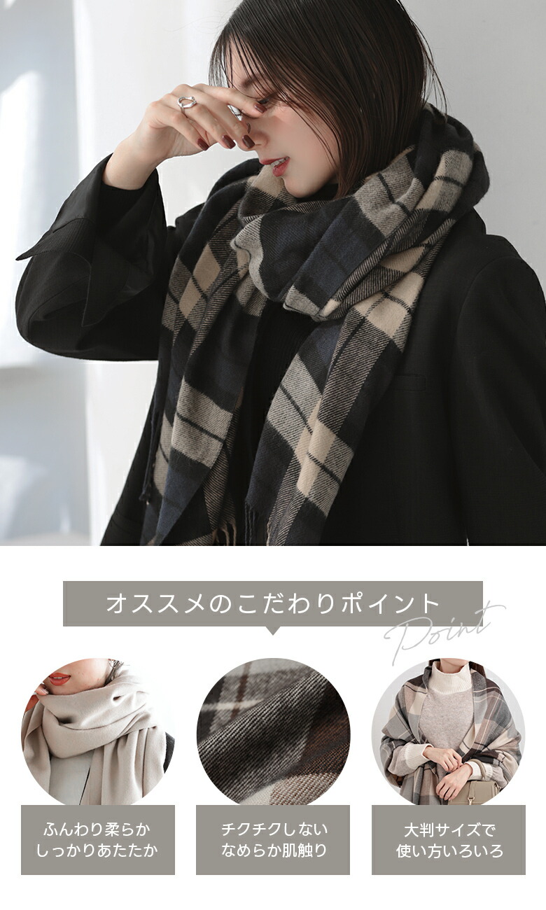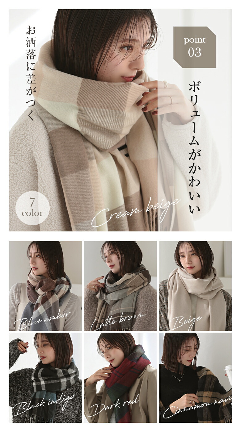 チェック柄 大判ストール 大判 マフラ マフラー スカーフ レディースマフラー ストール 人気 クリームベージュ ブルーアンバー ベージュ シナモンネイビー ブラックインディゴ ダークレッド ラテブラウン