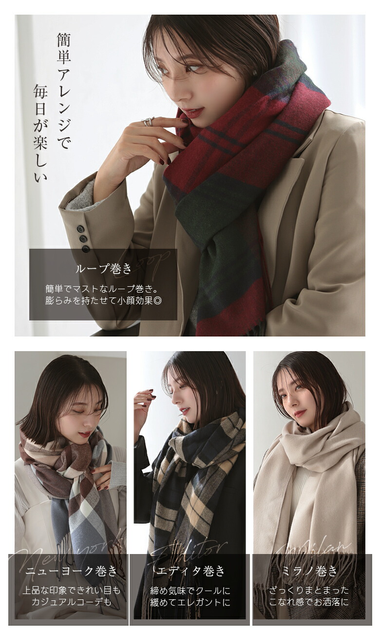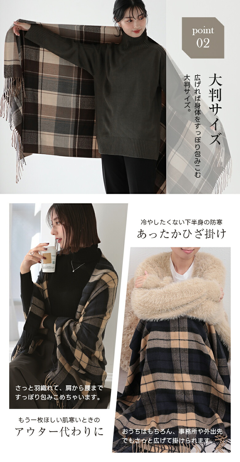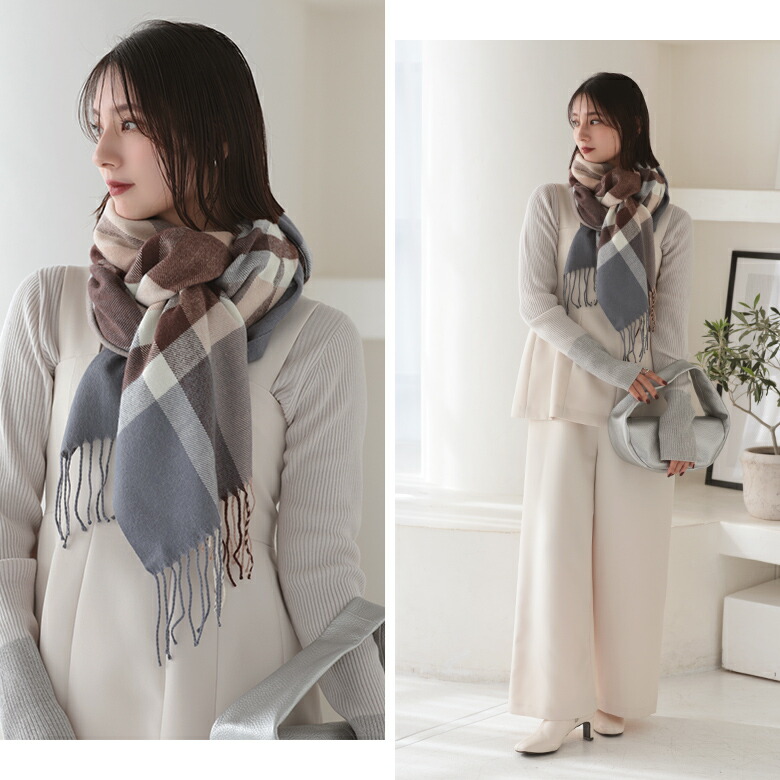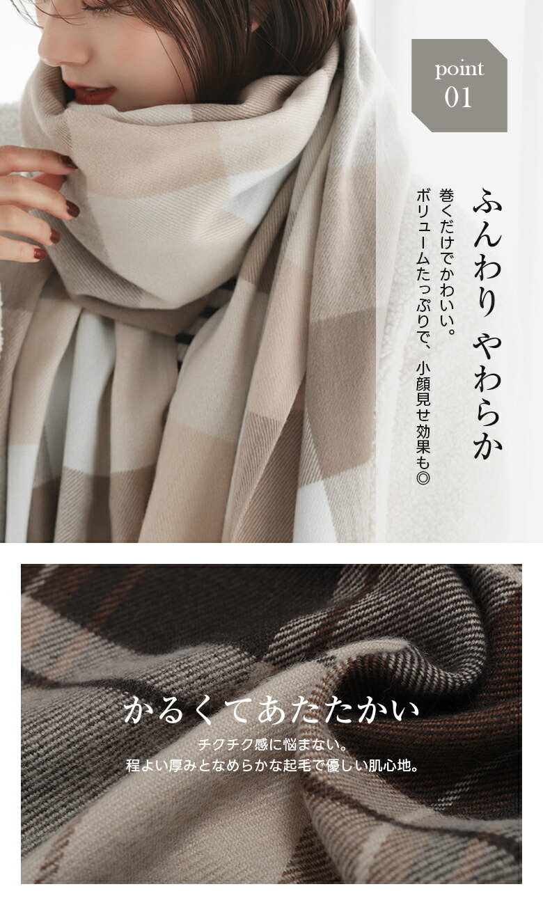 チェック柄 大判ストール 大判 マフラ マフラー スカーフ レディースマフラー ストール 人気 クリームベージュ ブルーアンバー ベージュ シナモンネイビー ブラックインディゴ ダークレッド ラテブラウン