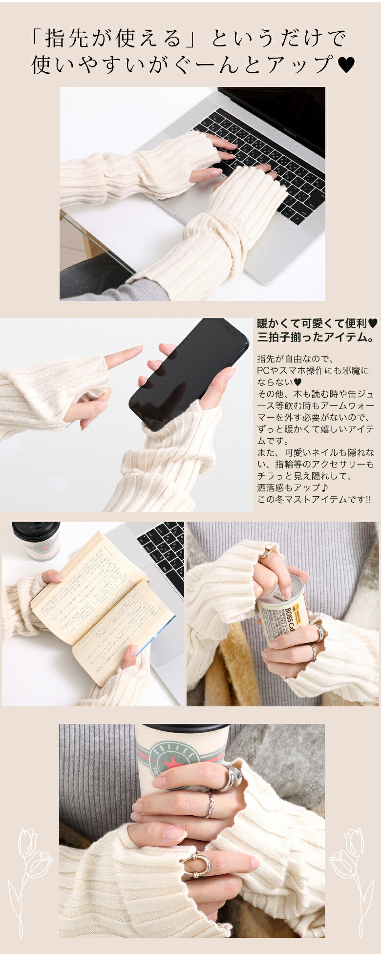 SNS話題 暖か 指穴 アームカバー 手袋 アームウォーマー アームウォーマー 豊富 アイボリー ブラック ベージュ グレー チャコールグレー ブラウン