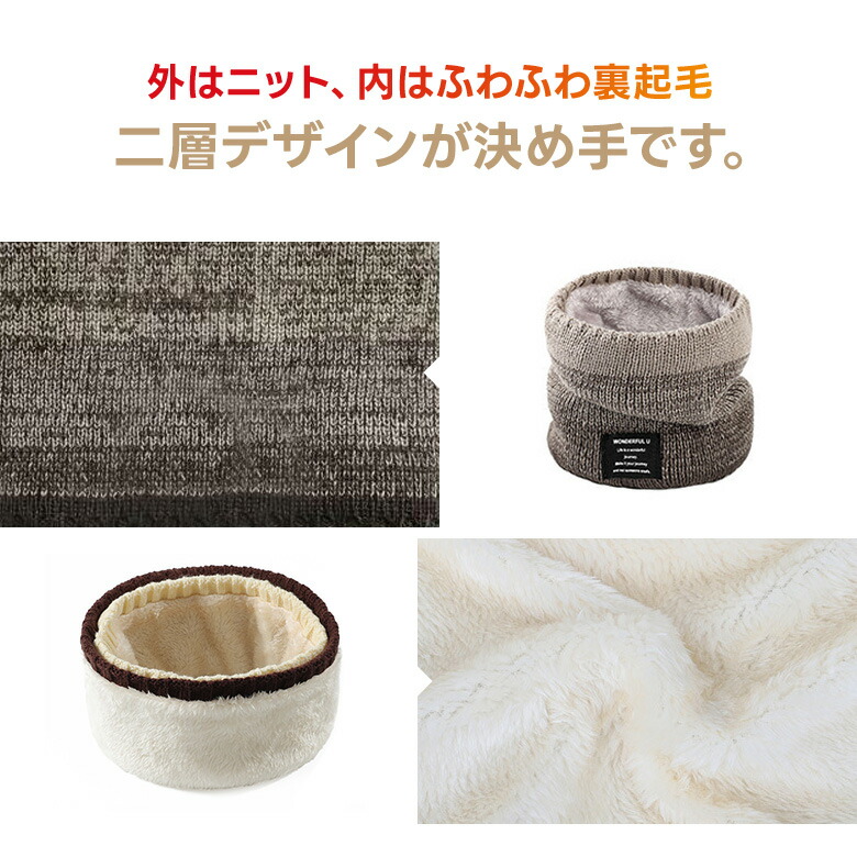 ネックウォーマー 裏起毛 ニット 二層 バッグ 小物 ブランド雑貨 新登場! コーヒー グレー ネイビー ベージュ レイクブルー