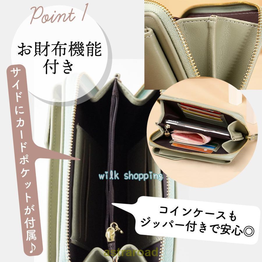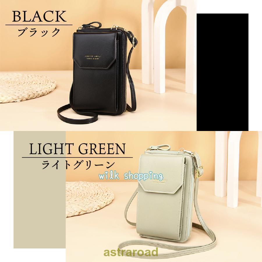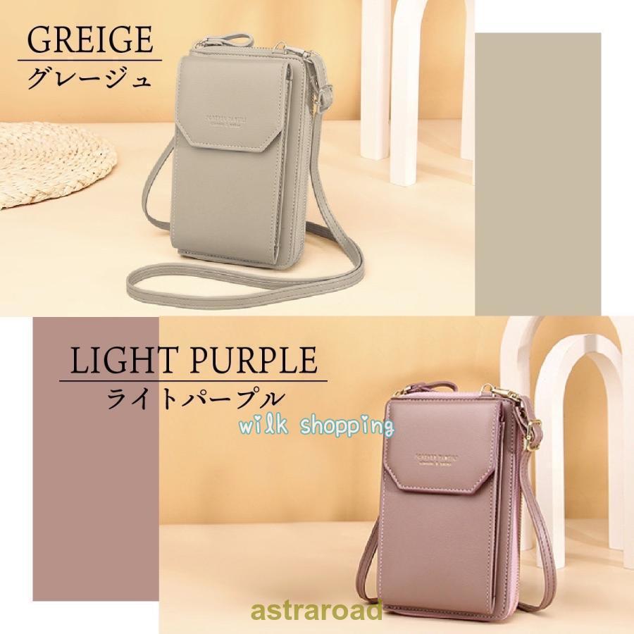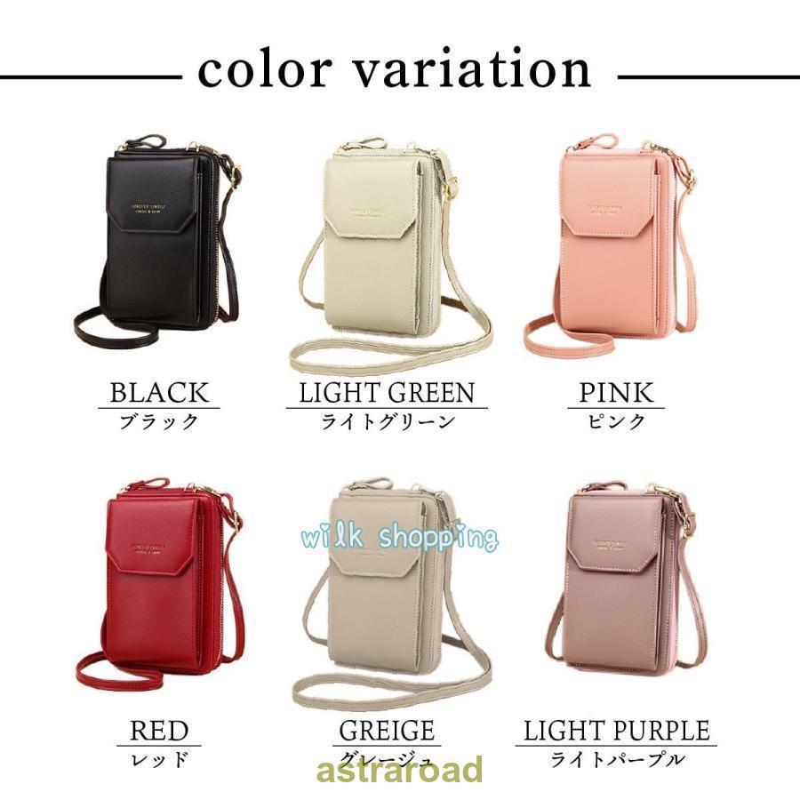 スマホショルダー 財布機能付き レディ バッグ 小物 ブランド雑貨 通販 ブラック ライトグリーン ライトパープル レッド ピンク グレージュ