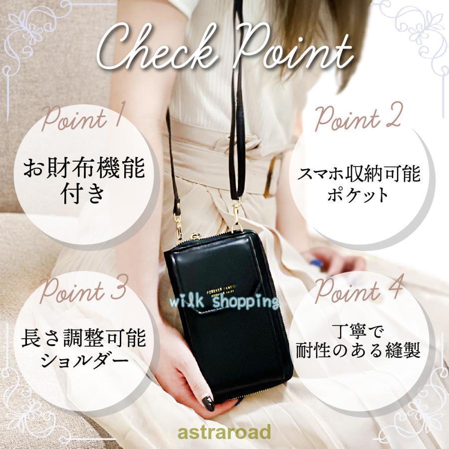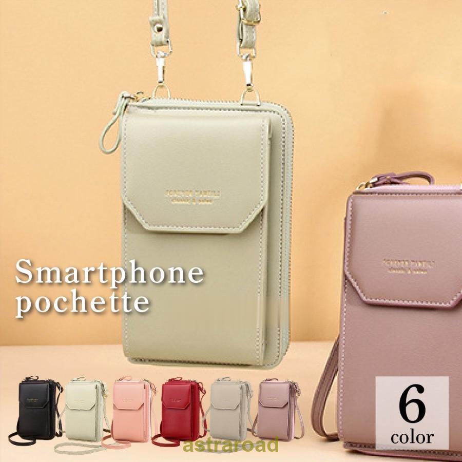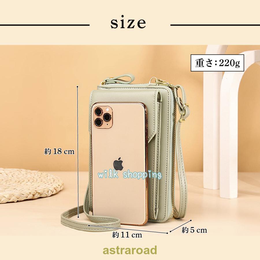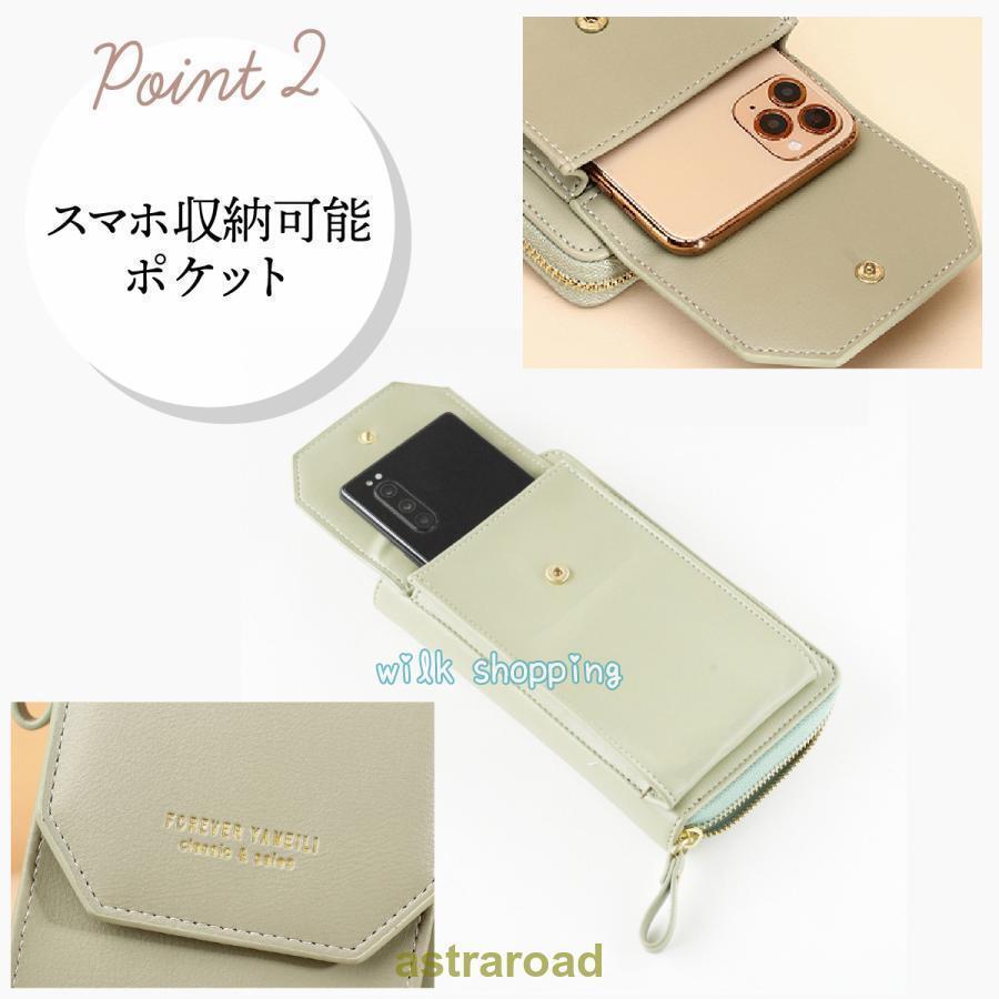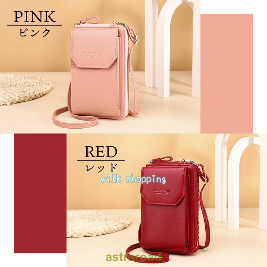 スマホショルダー 財布機能付き レディ バッグ 小物 ブランド雑貨 通販 ブラック ライトグリーン ライトパープル レッド ピンク グレージュ