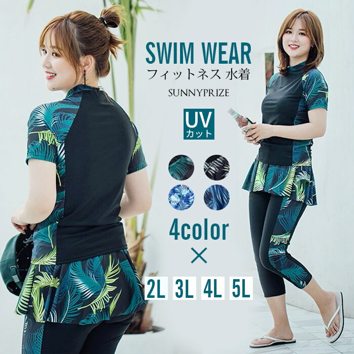 フィットネス水着 服みたいな 半袖 セ 水着 続々入荷中 2L(XL) 3L(2XL) 4L(3XL) 5L(4XL) A B C D