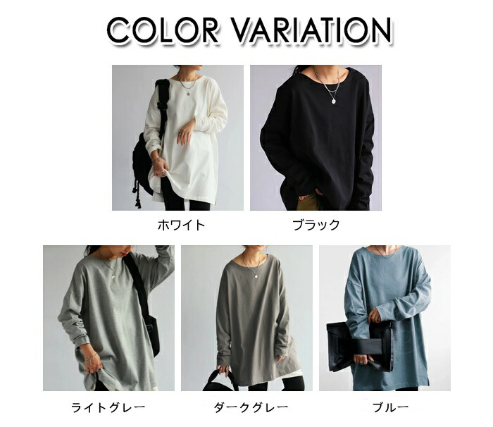 40%OFF ロングTシャツ レディー レディースファッション 通販 M L XL ホワイト ブラック ブルー ライトグレー ダークグレー