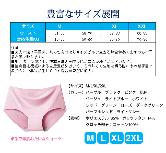 シームレスショーツ レディース 1枚 インナー 下着 ナイトウエア 通販 M(40-47.5kg) L(47.5-55kg) XL(55-65kg) XXL(65-75kg) ライトパープル ブラック ピンク 肌色 ベージュ ライトブルー ホワイト レッド グリーン ローズ ダークブルー パープルレッド ライトグレー