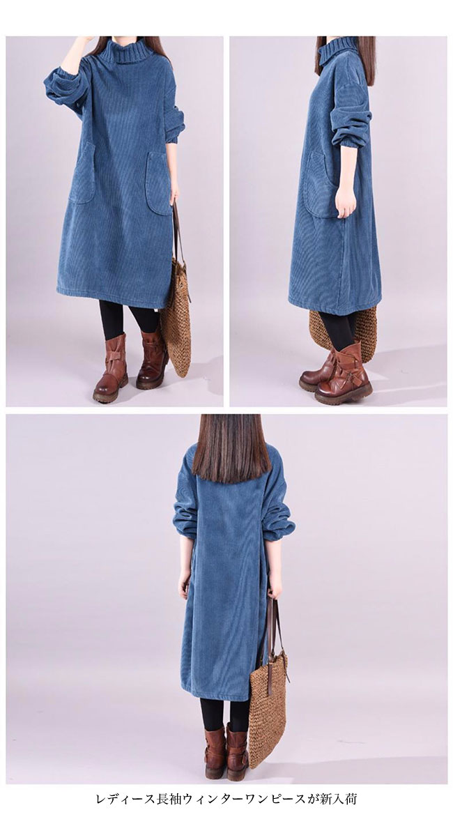 裏起毛 ワンピース レディース コーデ ワンピース 新登場! M L XL 2XL ブルー ブラウン ブラック