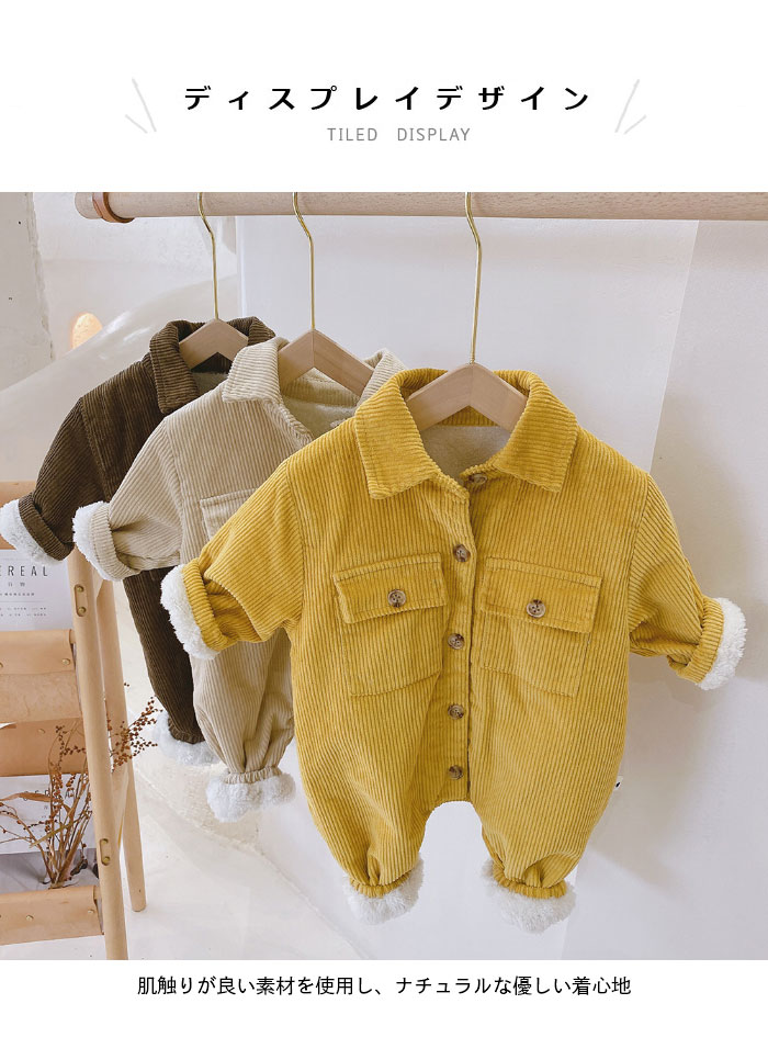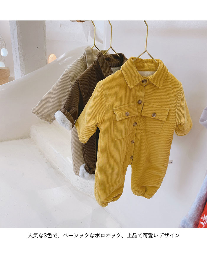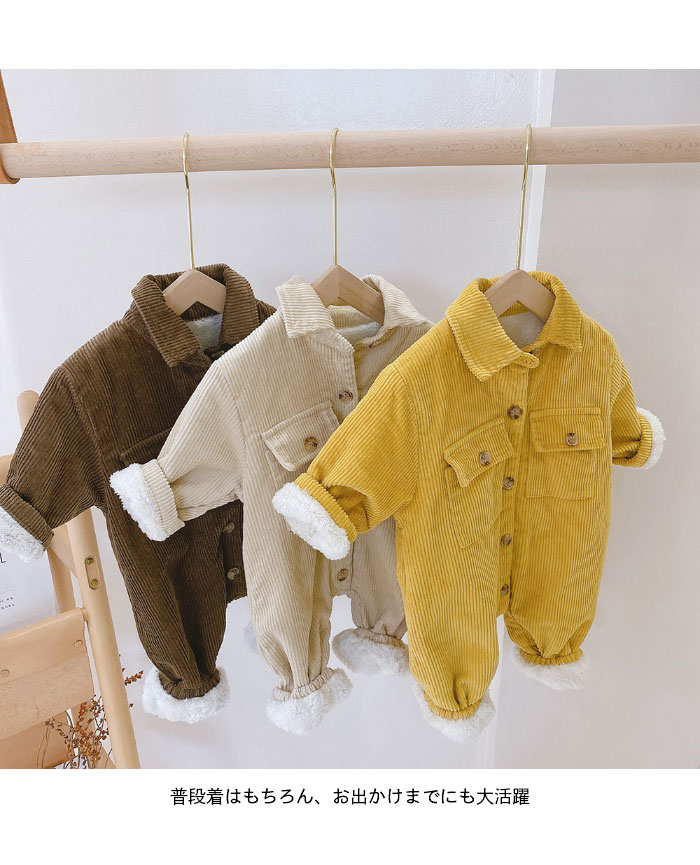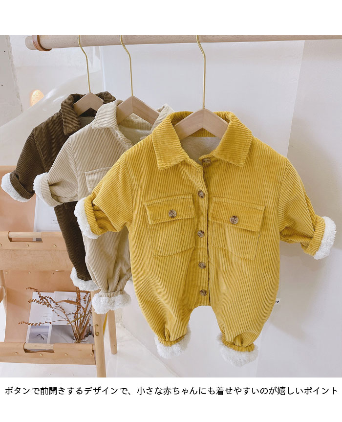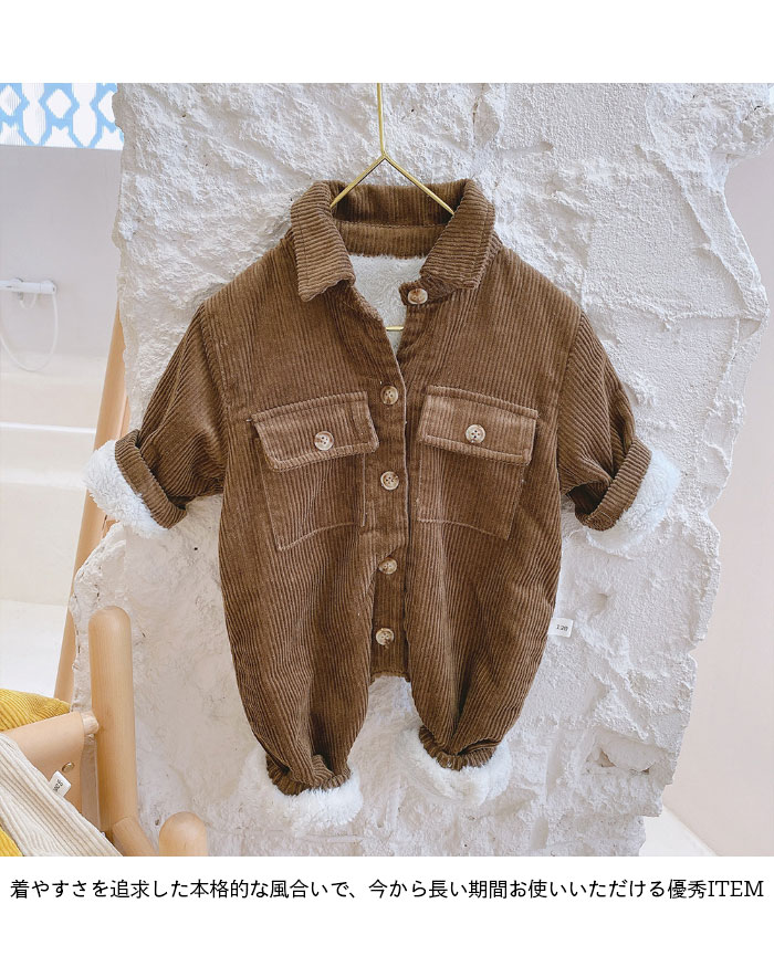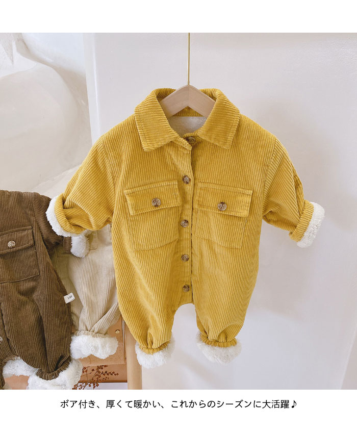 ベビー服 ベビーロンパース キッズ 子供服 子ども服 こども服 女の子 男の子 長袖 秋 冬 秋冬 66 73 80 90 カバーオール 長袖ロンパース ボア付き コーデユロイ 袴 コットン