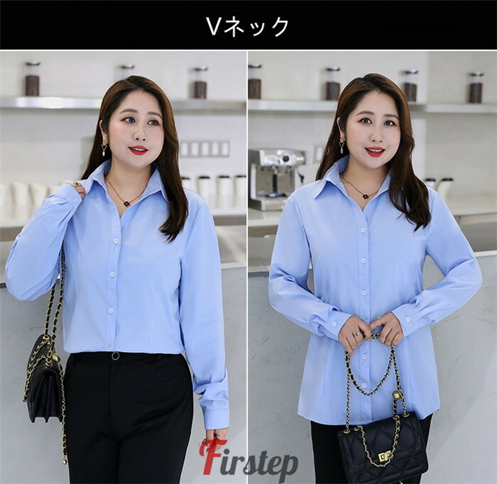 長袖 ワイシャツ レディース 大きいサイズ ブラウス Yシャツ Vネック 制服 ビジネス 結婚式 形態安定 スリム 白 シャツ ドレスシャツ 事務服 ビジネスシャツ 白シャツ