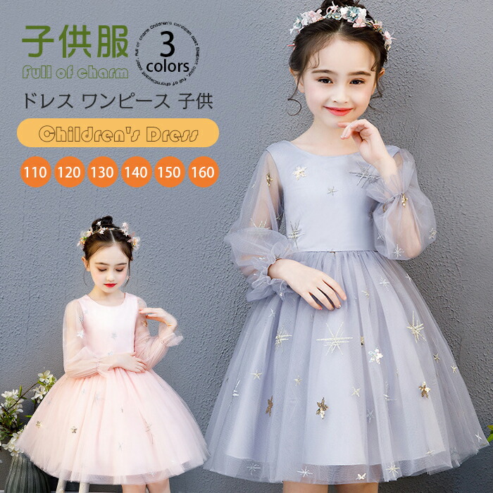 ドレス 女の子 子供 演奏会 3歳 ピ キッズ ドレス 続々入荷中 グレー ホワイト ピンク 110cm 120cm 130cm 140cm 150cm