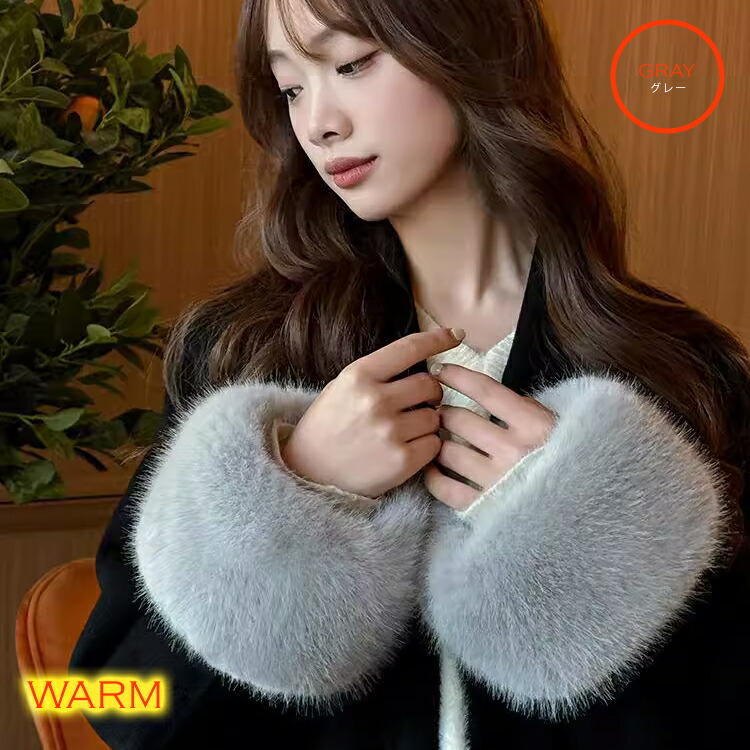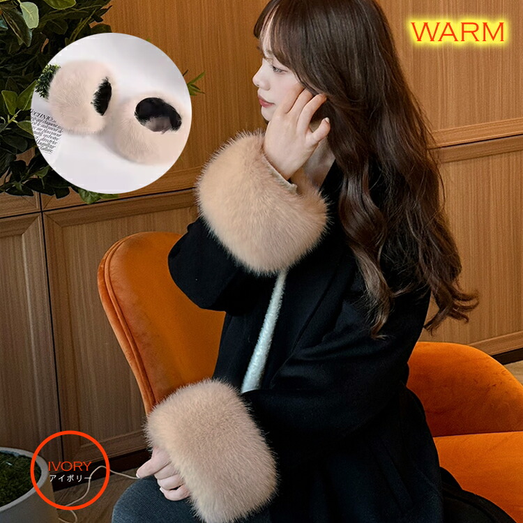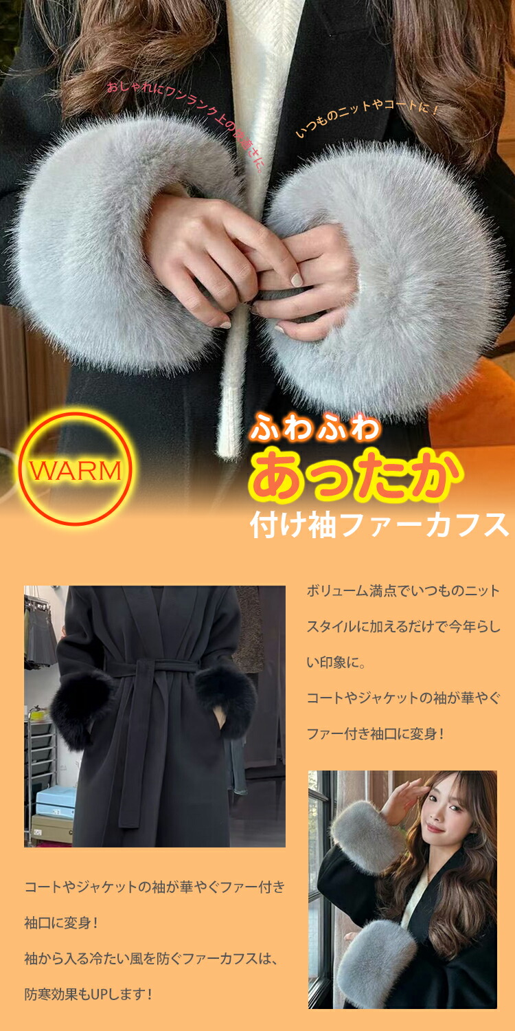 付け袖 ファー アームウォーマー フェイクファーカフス レディース アームカバー ふわふわ モコモコ きれいめ 脱着簡単 服飾り 暖かい 両腕セット あったか もこもこ コート 腕 ボリューム