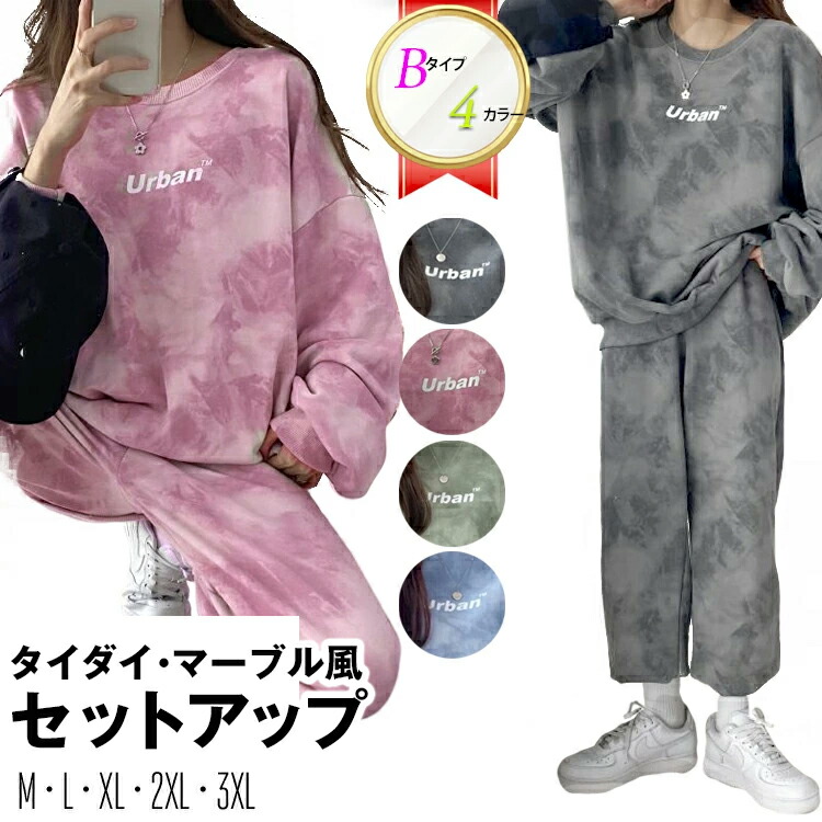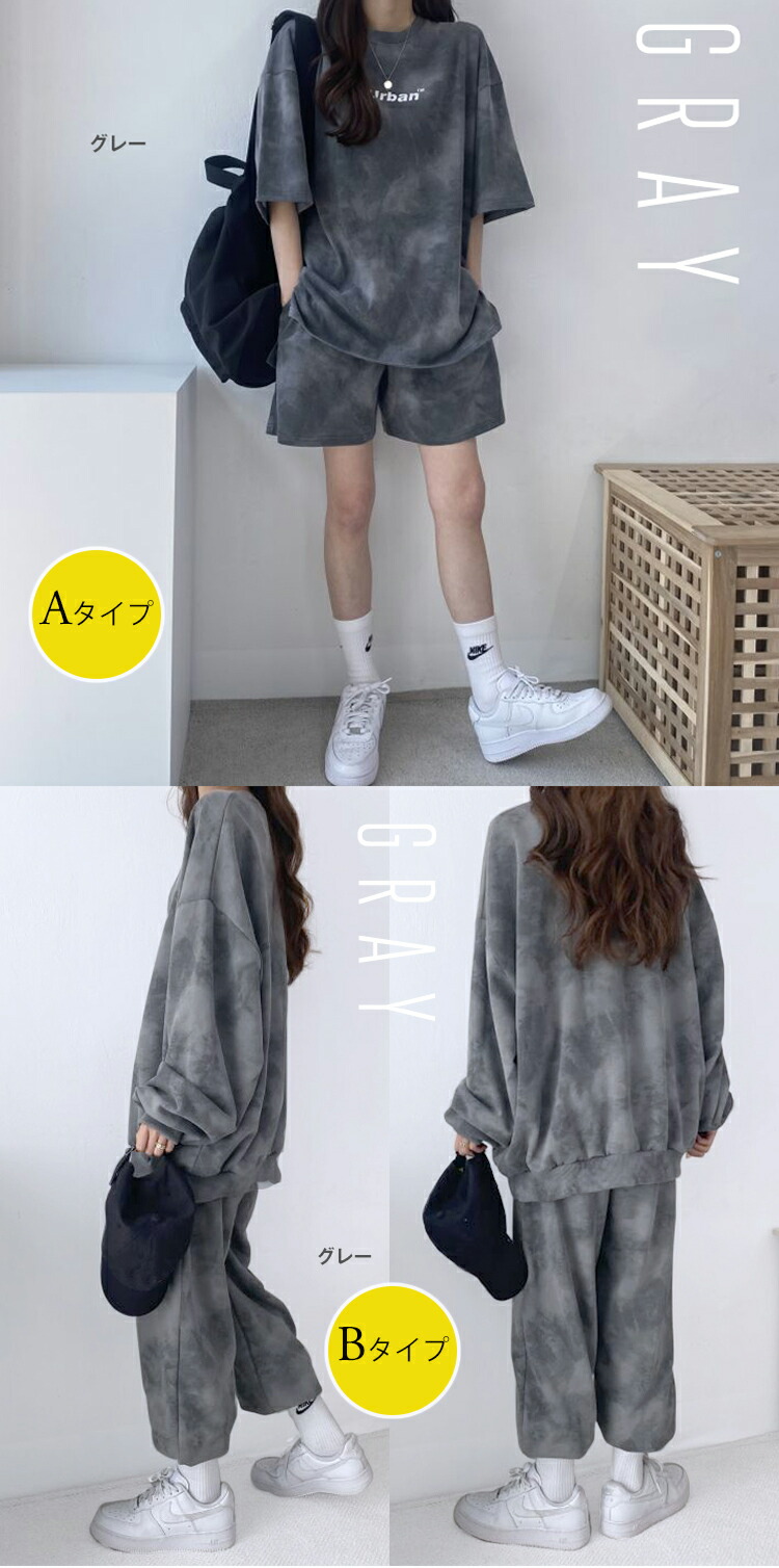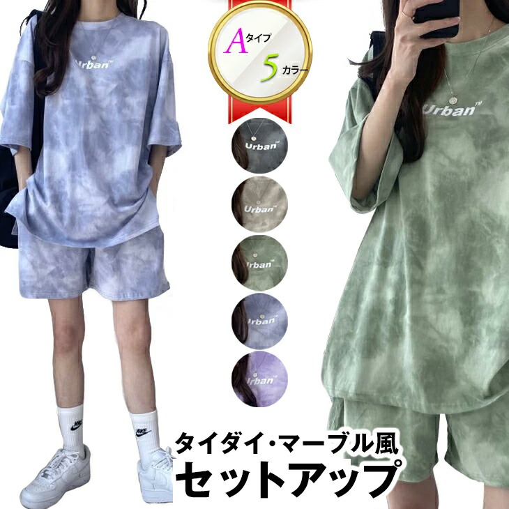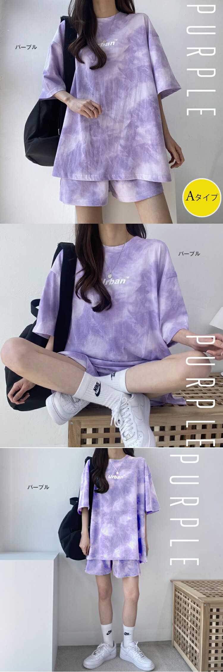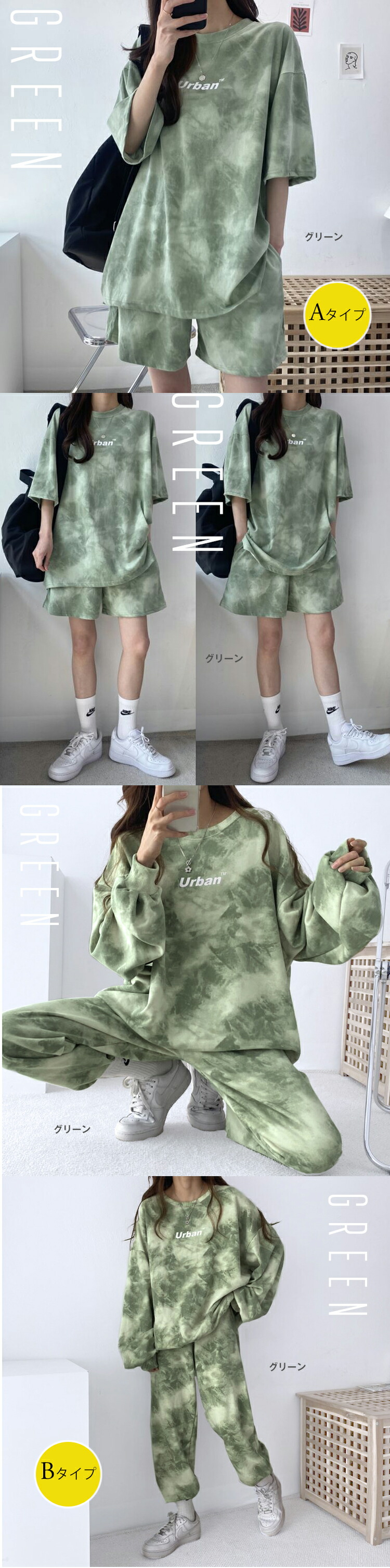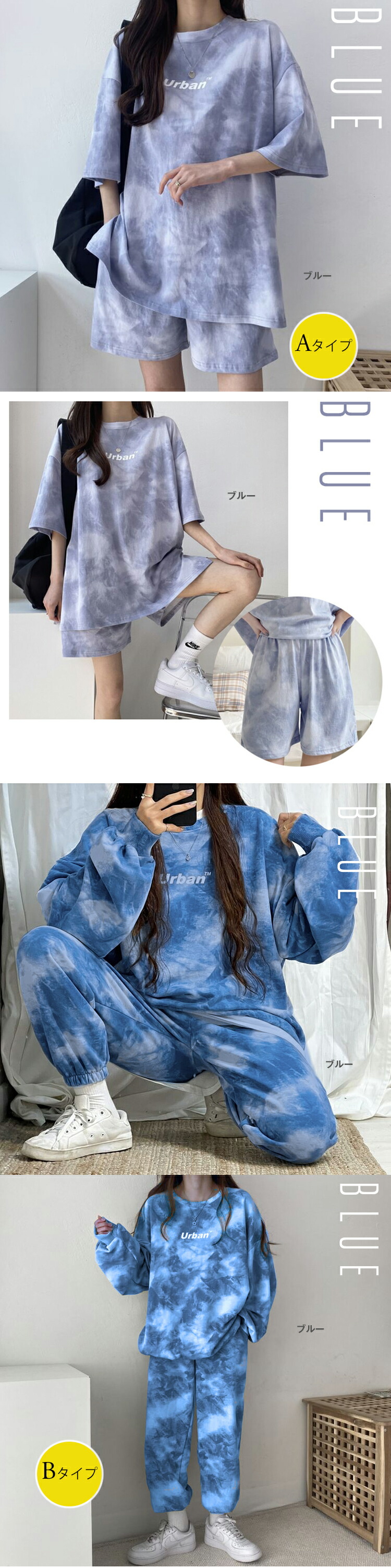 レディース タイダイ柄 ルームウェア セットアップ 上下セット 半袖 長袖 半ズボン 長ズボン 2タイプ タイダイ ゆったり オーバーサイズ お洒落 普段着 タイダイルームウェアセッ ワンマイルウェア