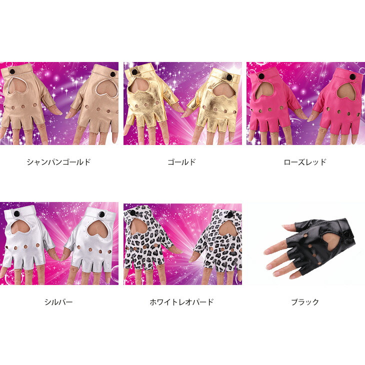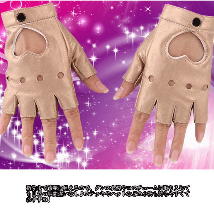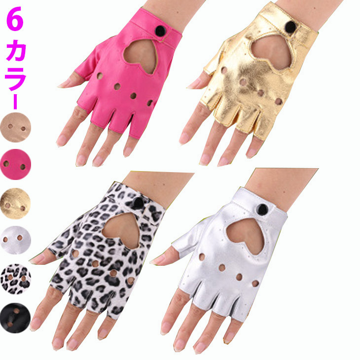ダンス 衣装 手袋 ヒップホップ イベント 6カラー 指なし ハート グローブ フェイクレザー フィンガーレス 合皮ハーフグローブ グッズ ポールダンサー ダンスアイテム パーティー コスプ ステージ